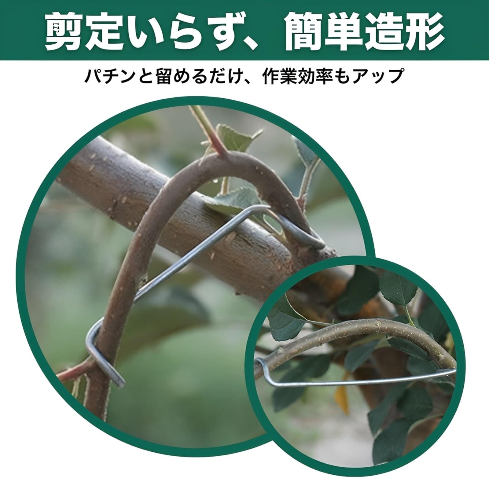 金具」は、果樹や盆栽の枝を、望む形に誘引、固定、曲げ、整形するための専用クリップです。植物の枝に装着することで、その枝の成長方向を調整したり、特定の形に固定することができます。✅花卉の茎の固定や、芸術的な盆栽の枝造形まで、これ一つで多岐にわたる園芸作業をサポート。植物の成長をコントロールし、思い描いた通りの美しい樹形・草姿を実現します。小さな新芽から太く頑丈な主枝まで対応可能です!✅簡単装着で効率アップ◎