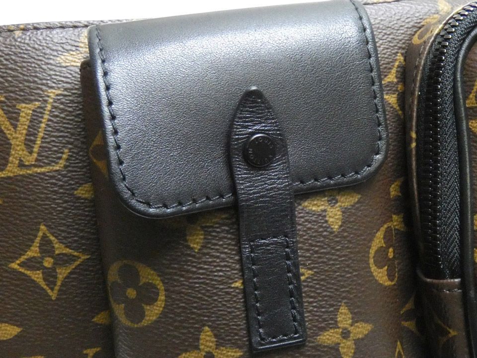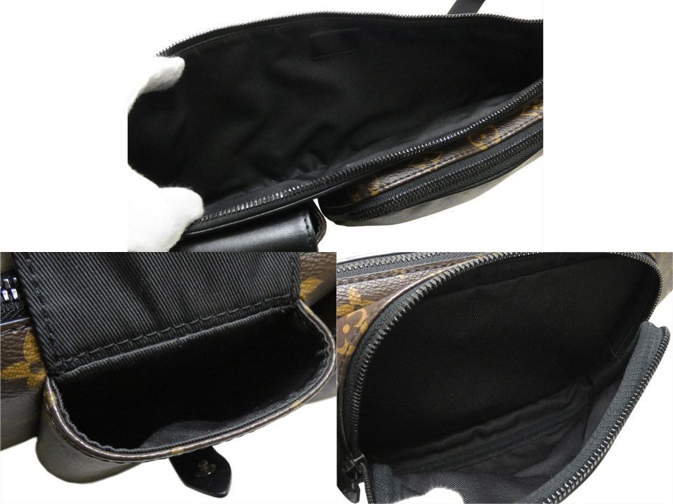 状態 中古A-B レザー部分に薄いスレや薄いしわ、ファスナーやファスナープルにスレや部分的な軽いメッキ剥がれ、ベルト金具にスレ傷、モノグラム生地に少し汚れなどあります。若干の香水臭もありますが、それ以外は目立つダメージなど見受けられずまだまだ十分かっこよくお使いいただけます。