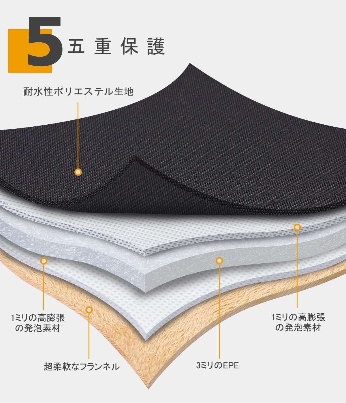 キズ防止の極細なボア裏地と 5重衝撃吸収構造で大事なパソコンやタブレットを守ってくれます。