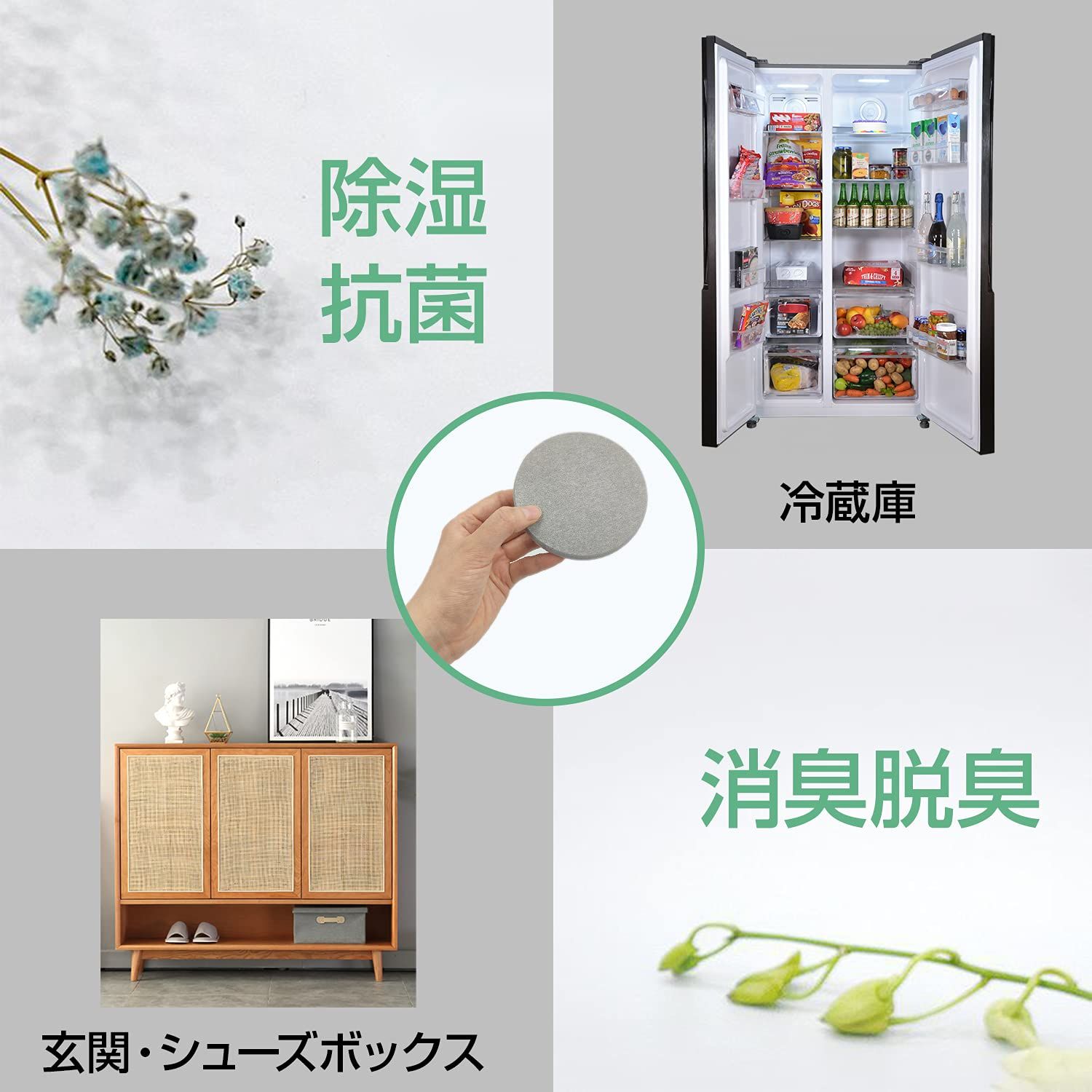 お手入れ簡単・調湿・抗菌:コップ敷きの表面が汚れた時にさっと流水で洗い流すだけで大丈夫。一般的な繊維に比べて極めて高い多孔質の珪藻土は、常に乾いた状態を持ち、細菌などの隠れる場所もないので、カビやダニが繁殖しにくい、カビやダニの予防に役立ちます。