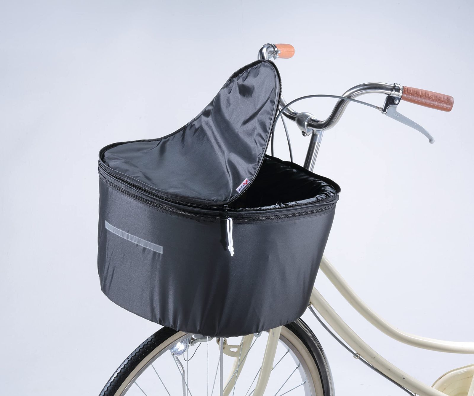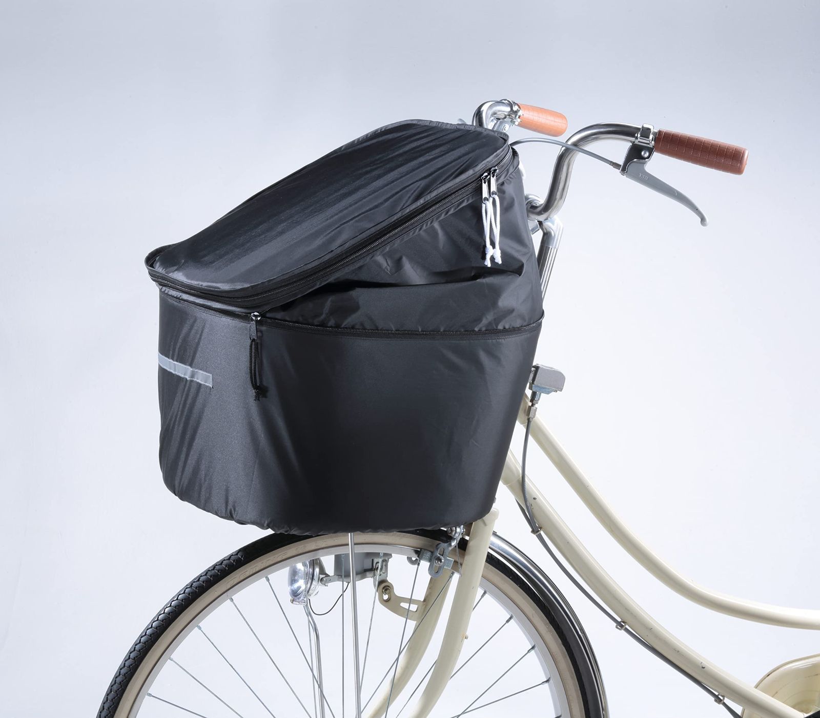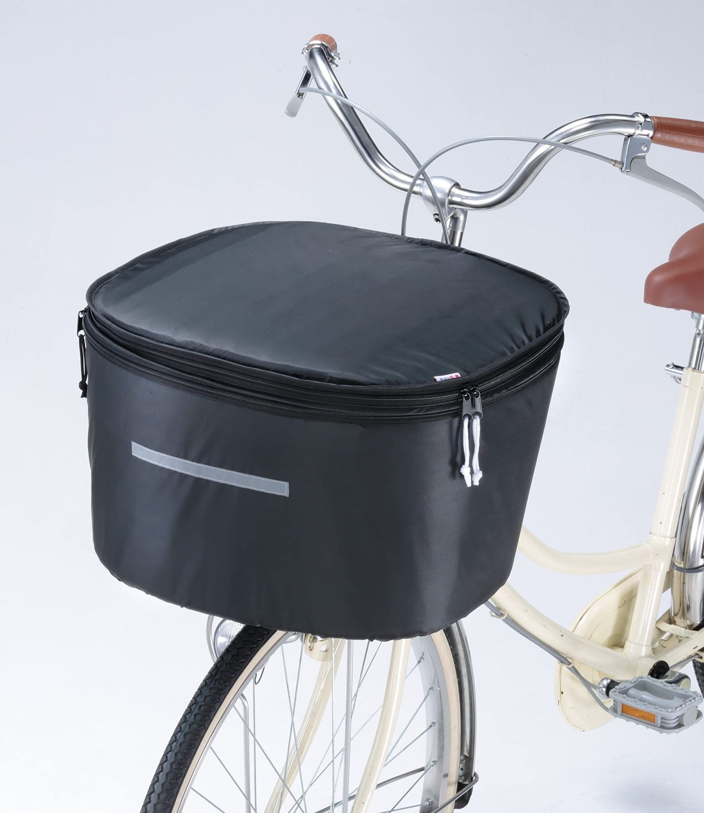 本体・ファスナーの色もオールブラックで、男性にもご利用いただけるシンプルなデザイン。 道も安心の反射帯付き。たっぷり収納できる2段式カゴカバー。 の日も安心な防水&撥水加工。両開きで開閉楽々。背面伸縮ゴム入り。 ・夜道も安心の反射帯付き。 ・たっぷり収納できる2段式カゴカバー。 ・雨の日も安心な防水&撥水加工。 ・両開きで開閉楽々。 ・背面伸縮ゴム入り。