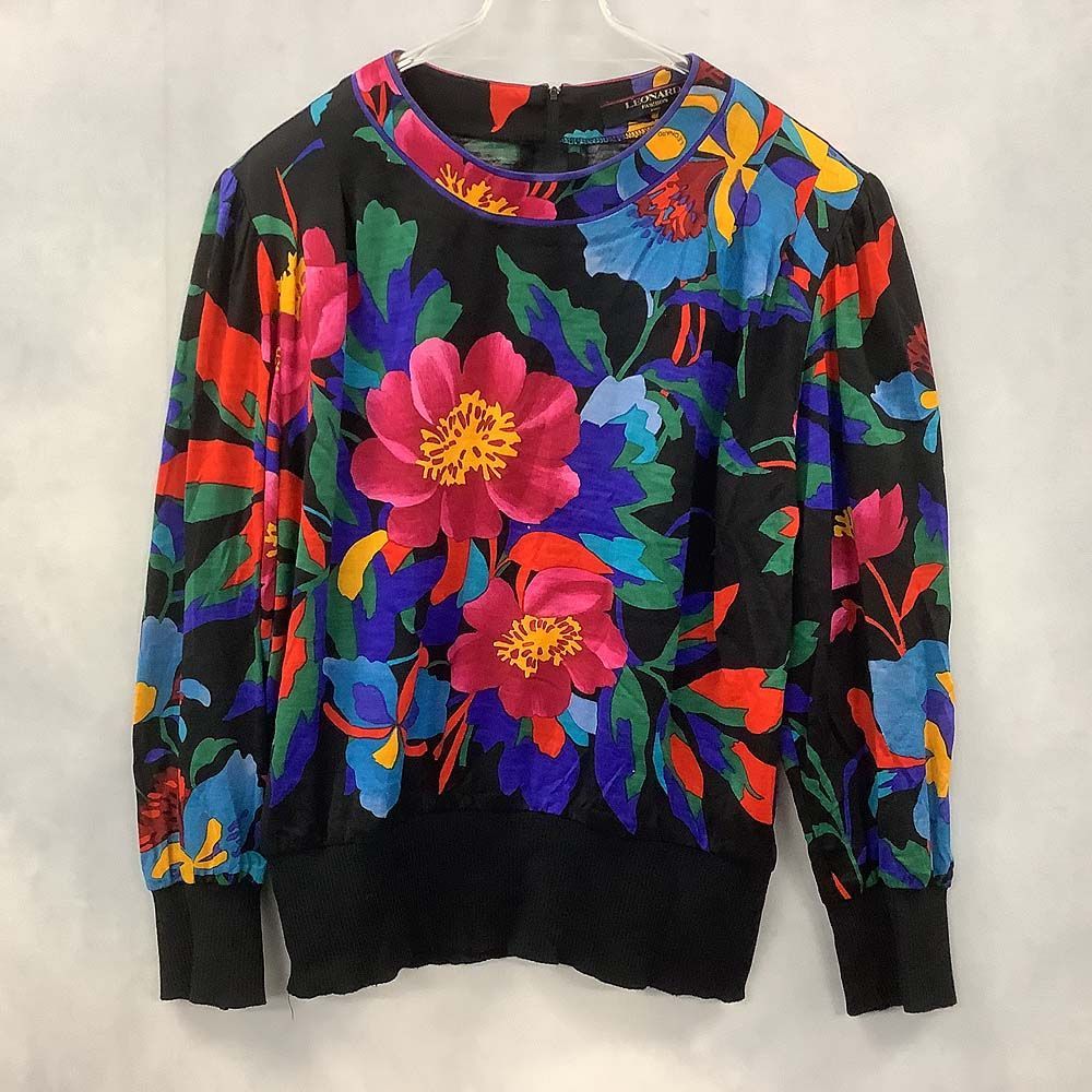 LEONARD FASHION レオナール カットソー シルク混 長袖 ブラック系 L [PT19020]