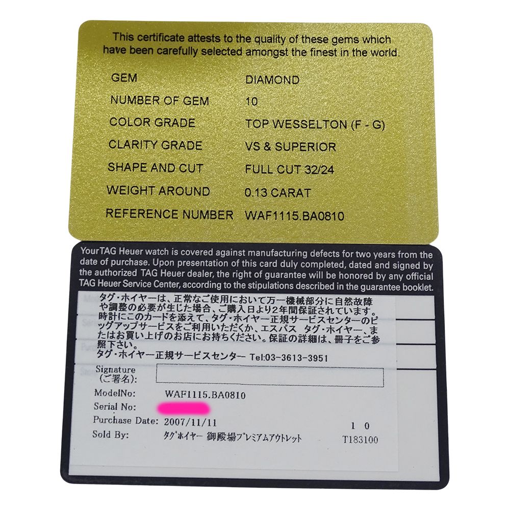 商品名:タグホイヤー TAG Heuer アクアレーサー WAF1115 BA0810 時計 メンズ ブランド 10P ダイヤモンド シェル デイト クオーツ QZ ステンレス SS シルバー 磨き済み 【中古】