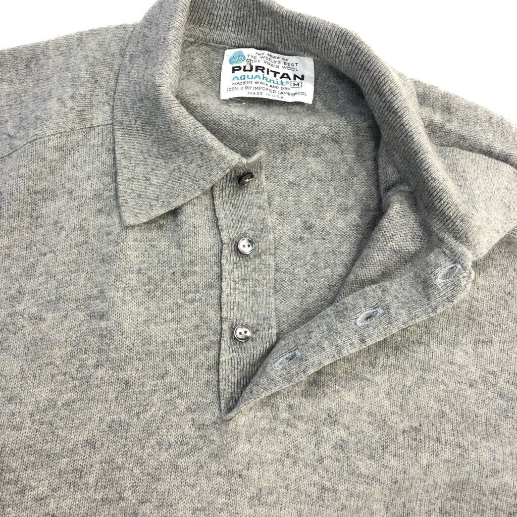 80年代 USA製 puritan ピューリタン ウールニット ポロセーター グレー(メンズ M)中古 古着 V6788