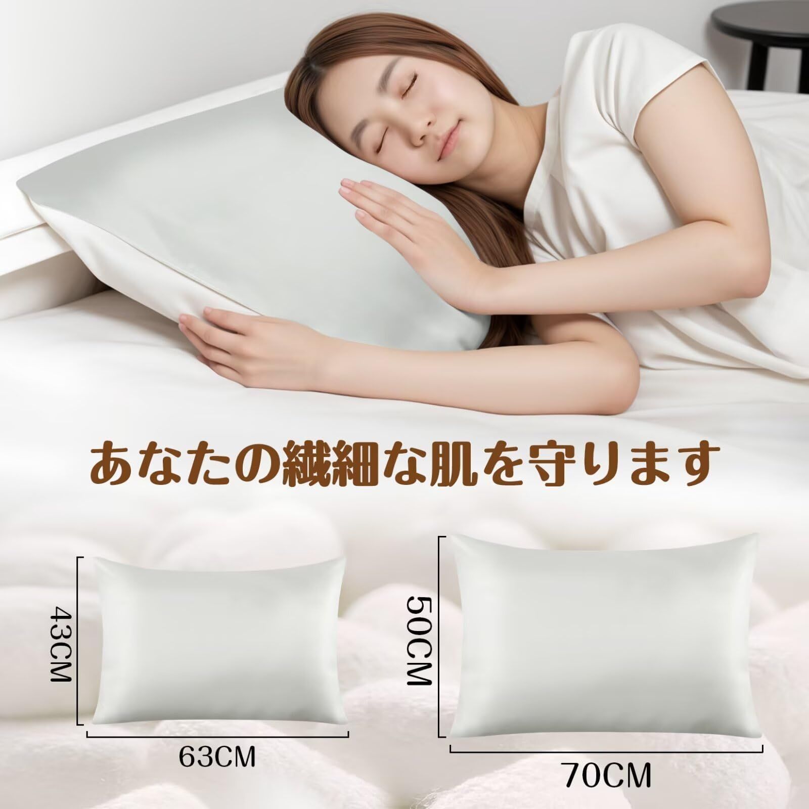 【美髪効果・寝ている間にヘアケア】人は1日に寝返りを20~30回も打つと言われてます。寝返りで髪同士が擦れると、切れ毛・枝毛の原因となります。シルク枕カバーは就寝時に髪の毛の絡まりを防ぐ効果があり、乾燥や寝返りで起こる髪の摩擦によるダメージを最小限に抑え、翌朝には髪の毛がいつもよりサラサラに!シルク枕カバーを日常的に使うことで髪質改善も期待できます。切れ毛や寝癖を有効に防ぐことができ、美髪・美肌に日々心にかけている方はぜひお試しください。