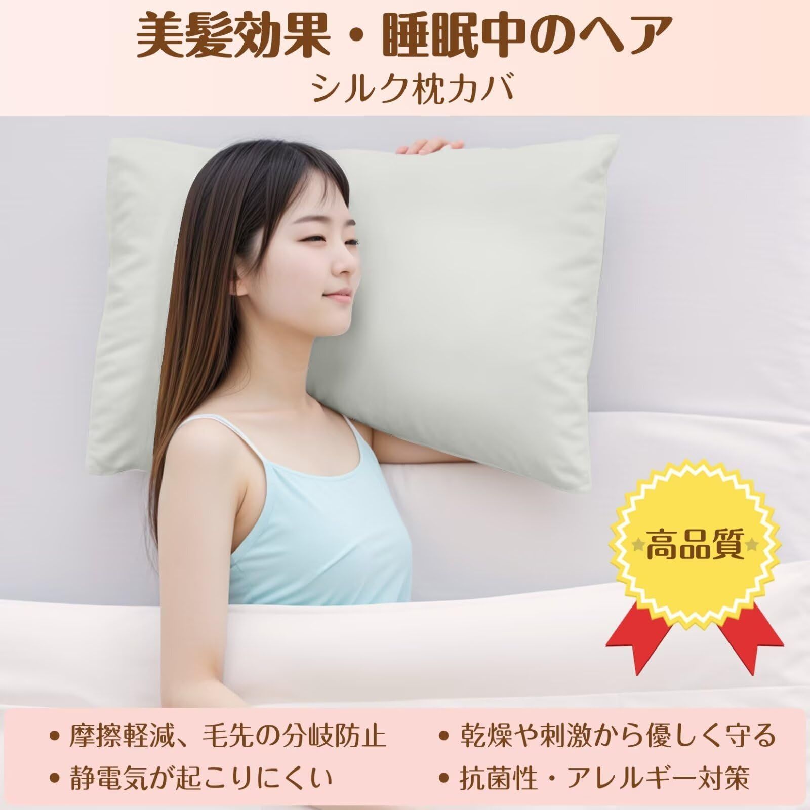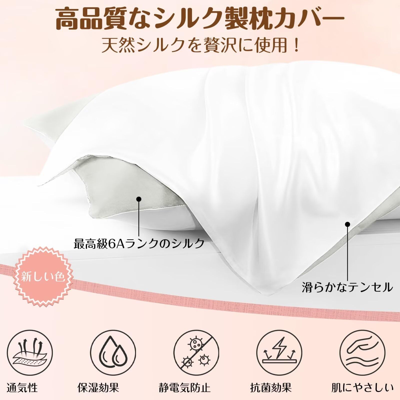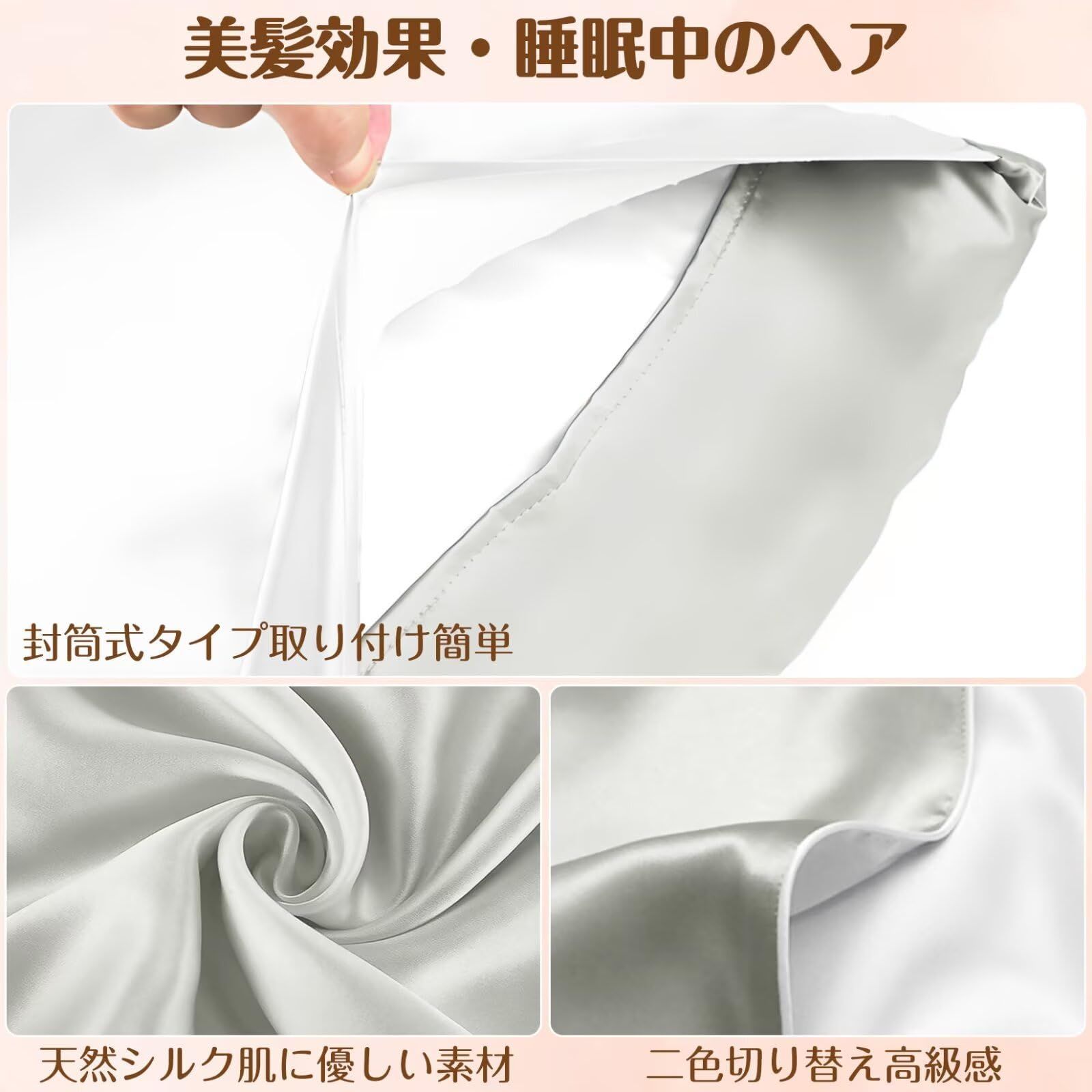 【封筒式・静電気防止・抗菌性】シンプルでセッティングが簡単な封筒式に仕上げました。シルク繊維は天然の保湿成分セリシンで覆われており、静電気が発生しにくく、朝の髪の乱れを軽減してくれます。シルク枕カバーは保湿性や通気性、保温性に優れているだけでなく、抗菌性にも優れているのでとっても衛生的。シルク枕カバーは長く使っていくうちに、髪が段々柔らかく滑らかになって光沢がでてきたりと髪質改善を実感できます。