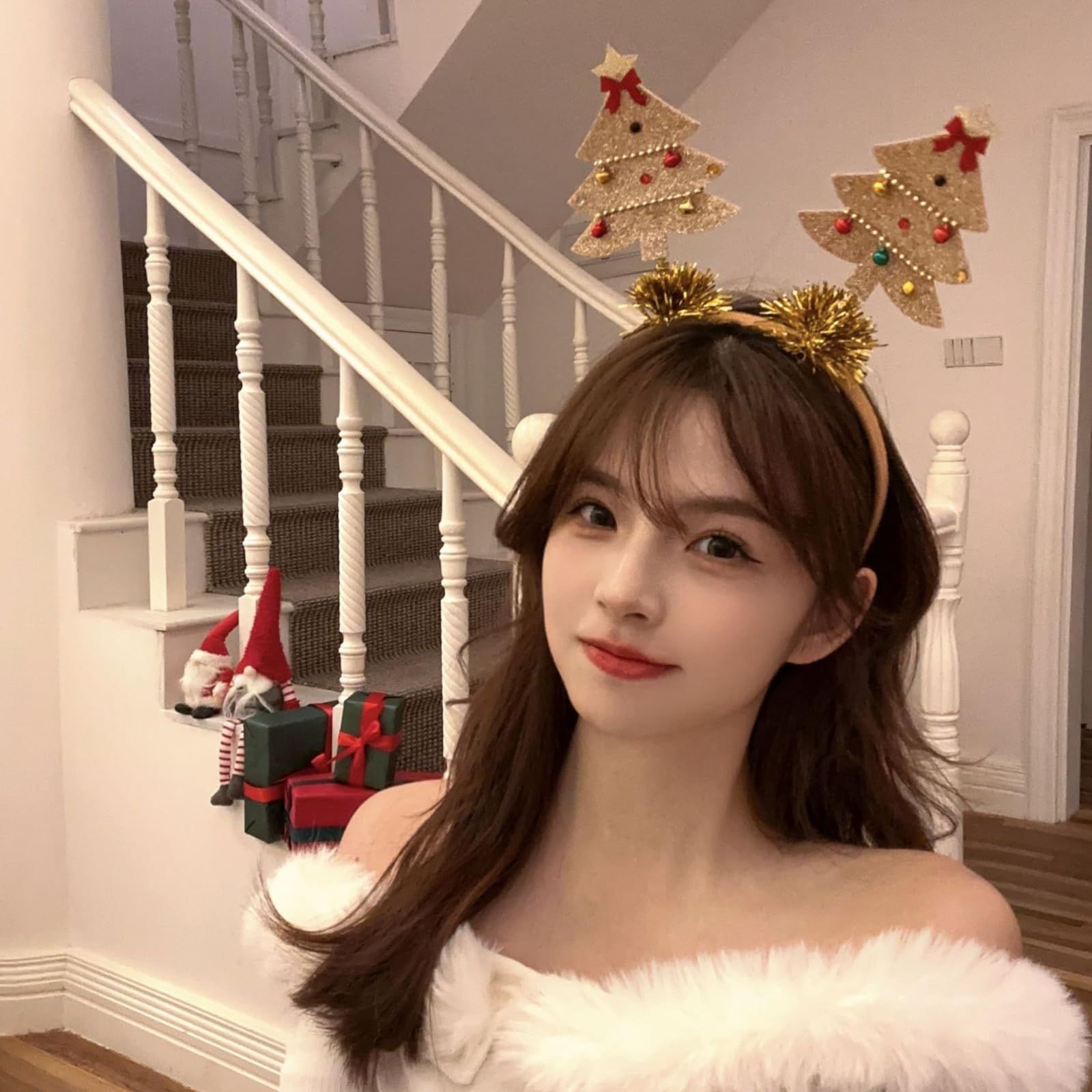 [EZ PEACH] カチューシャ 可愛い ヘアフープ キラキラと輝 揺れる 触角カチューシャ ヘアバンド ヘッドドレス 女の子 頭飾り 結婚式 変装グッズ 可愛い おしゃれ 撮影小道具 髪飾り ヘアアクセサリー パーティー 変装用 コスプレ小物 写真小道具 (Gold/クリスマスツリー 幅約1cm)