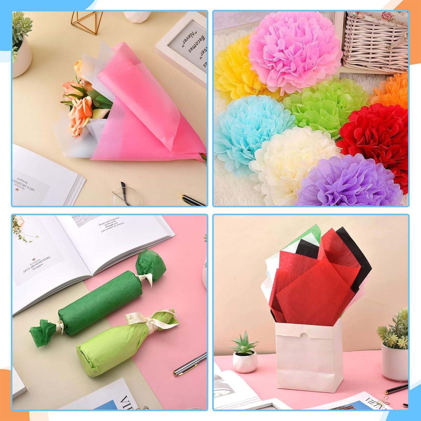 豊富な色の組み合わせ:色鮮やかで半透明の薄葉紙は、豊富な色と十分な量で、自由にDIYしてお気に入りのクラフトを作ることができます!