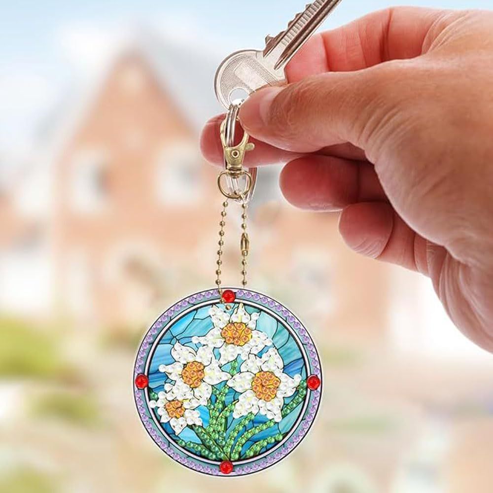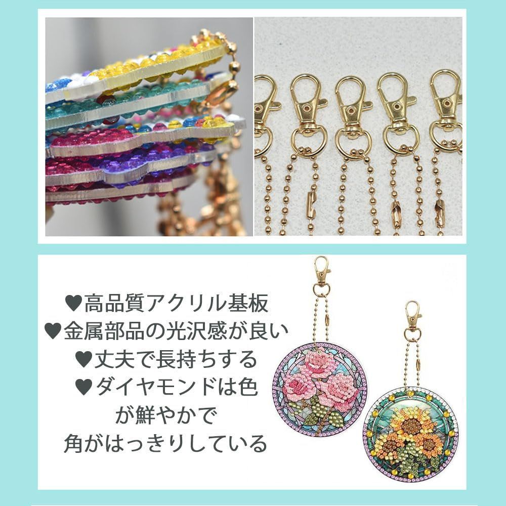 DIYの楽しみ:自分で作るのは、とても違う体験で、達成感を得ることができて、過程の中で注意力を育成することができて、レジャー時間とこまごました時間の良い選択です。6種類の異なる円形の花のデザインは、ヒマワリ、バラ、チューリップなどが美しく、さまざまなニーズに対応できます。豊富な色とダイヤモンドの反射効果を組み合わせて、キーホルダーをライトの下でより美しく表現し、とてもクリエイティブで特色のあるアクセサリーになります!