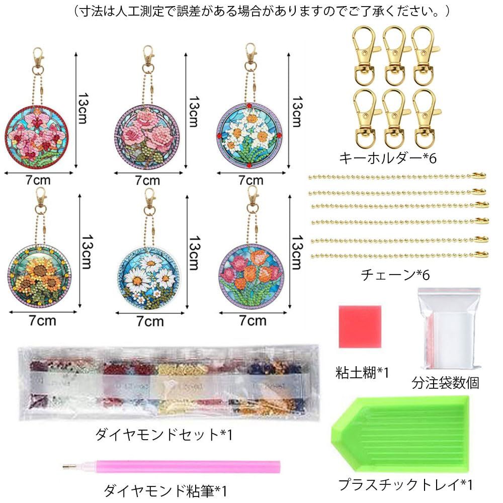 セット内容:ダイヤモンドキーホルダーセット6セット、PVC基板*6+チェーン*6+キーホルダー*6+ダイヤモンド材料パック*1+ツールパック*1(ダイヤモンド粘筆*1+プラスチックパレット*1+粘土糊*1+若干分装袋)、完成品のサイズ:約6.5~8cm*15cm。(寸法は人工側量で誤差がある場合がありますのでご了承ください。)。