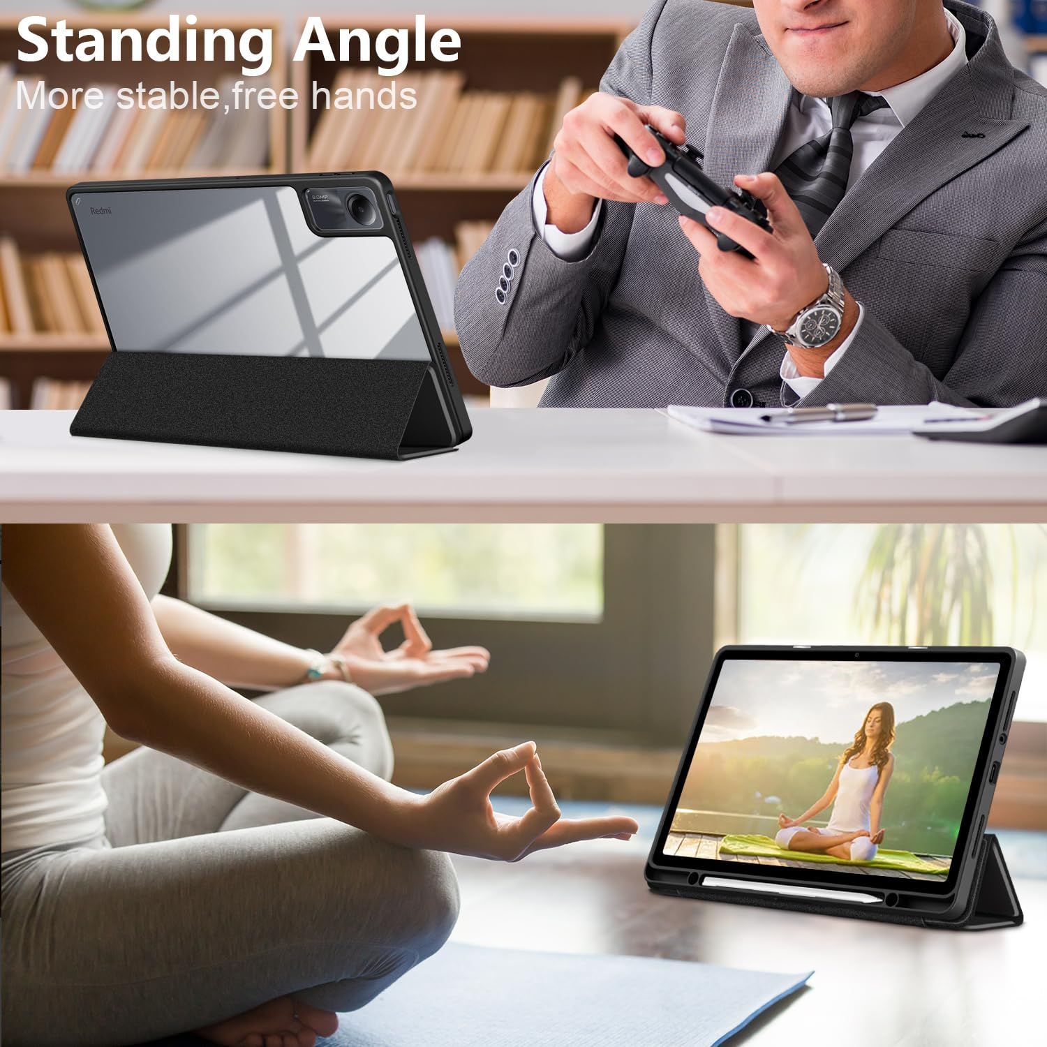 【スタンド機能】内蔵マグネットで固定され、横置きでスタンド機能も付き、好きな角度を調節し、動画鑑賞、読書などを楽しめます。