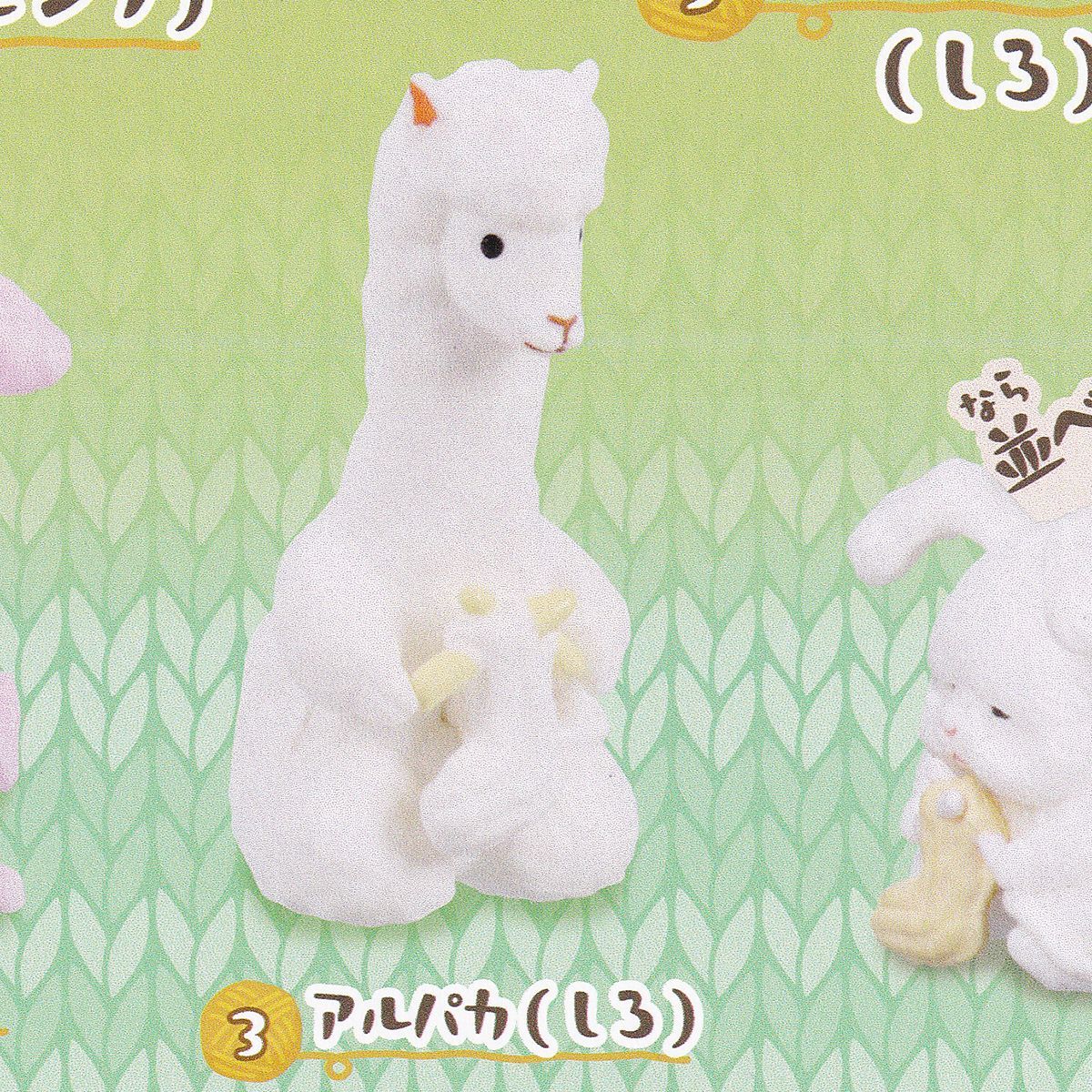 自分の毛で編み物をする動物たちのフィギュア「じぶんで、あめるよ。」がカプセルトイで新登場です。