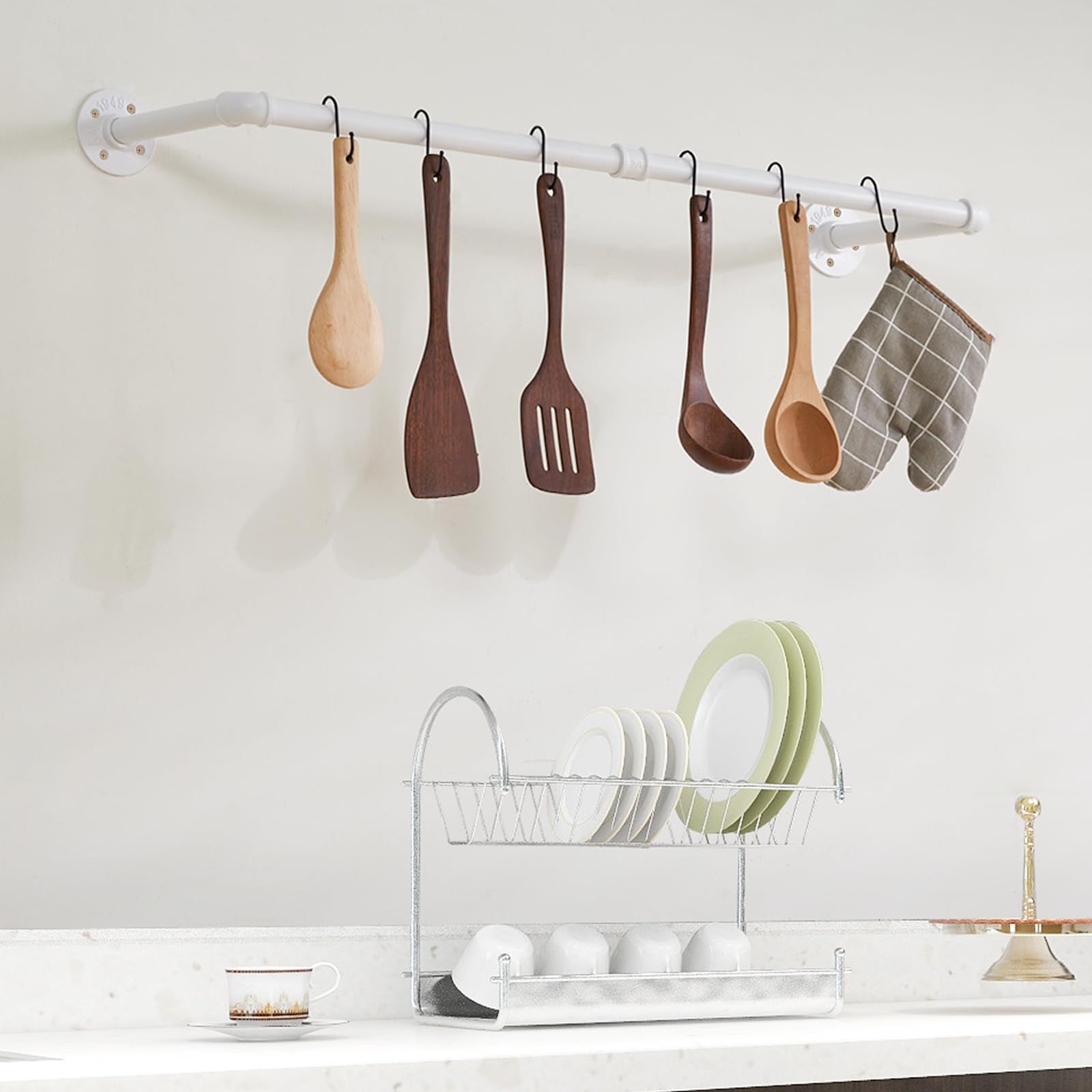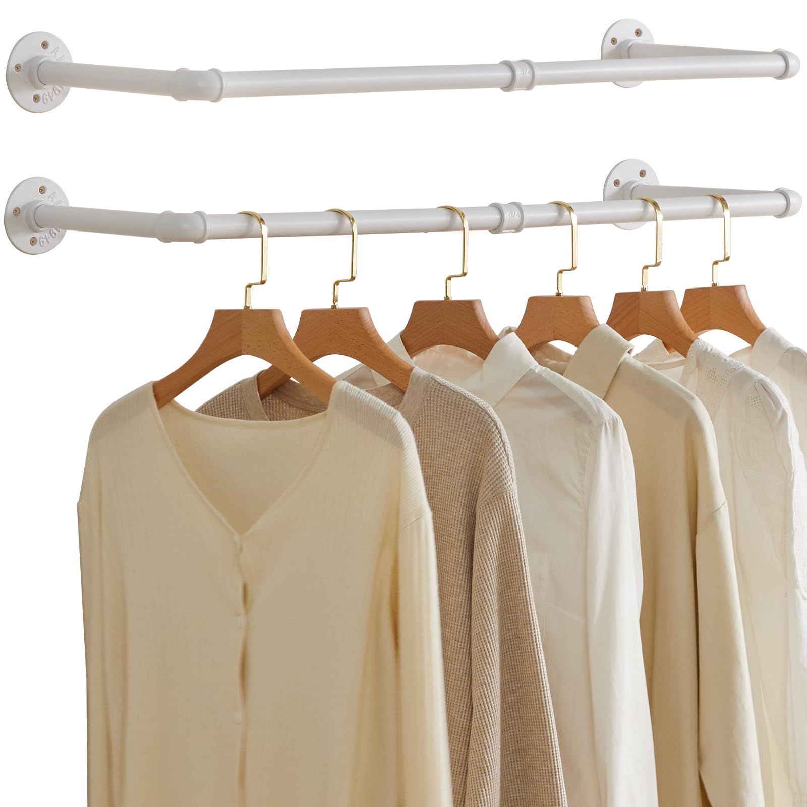 IBUYKE ハンガーラック アイアン 工業用パイプ衣類ラック 幅87㎝ たっぷり収納 アンティーク調 壁取り付け式 省スペース DIY 多目的吊り棒 おしゃれ 2本セット白 JPTYJ001W-2