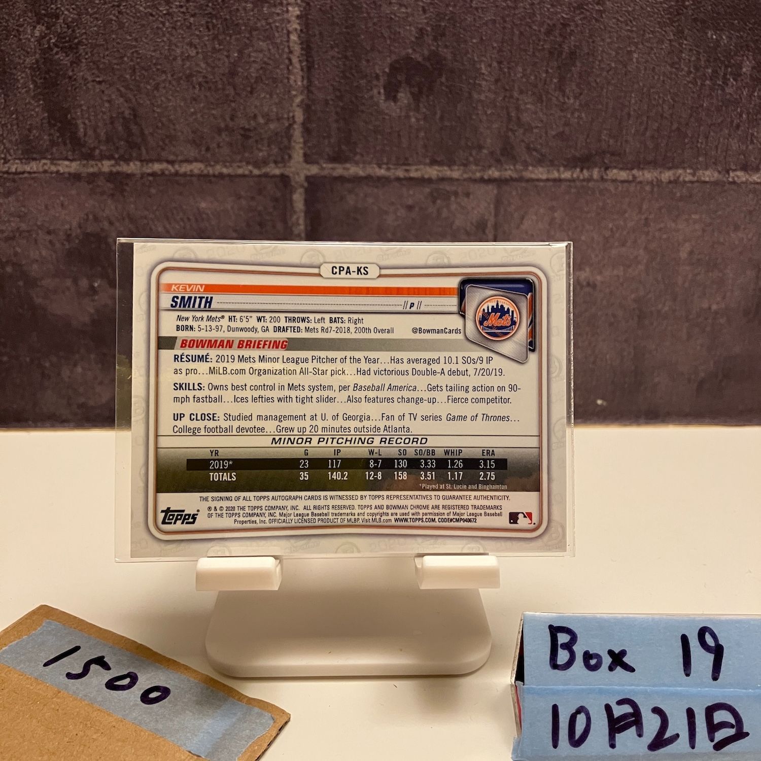 2020 Topps 1st Bowman Chrome Kevin Smith 直筆サインカード NEW YORK METS