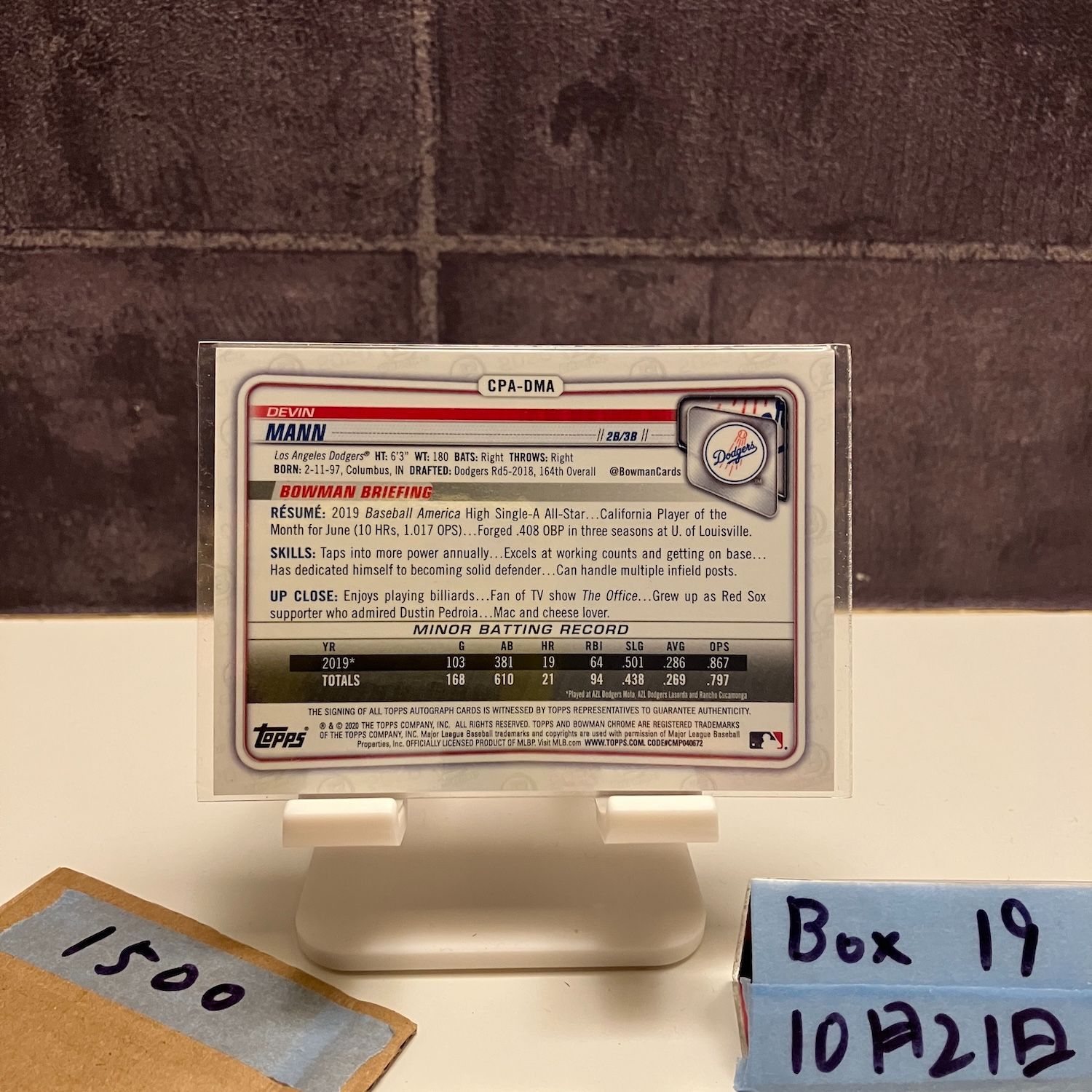 2020 Topps Bowman Chrome Devin Mann 直筆サインカード LOS ANGELES DODGERS