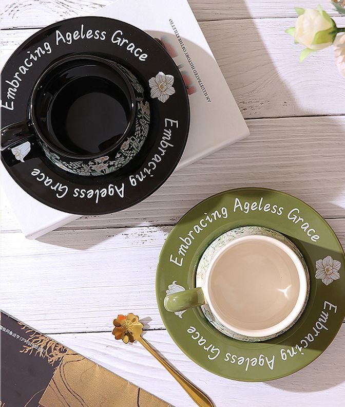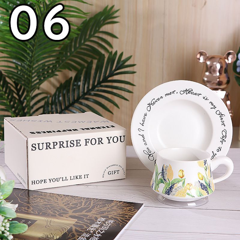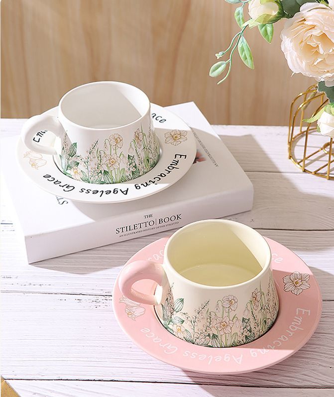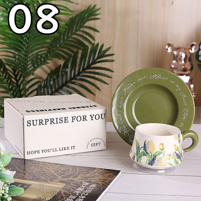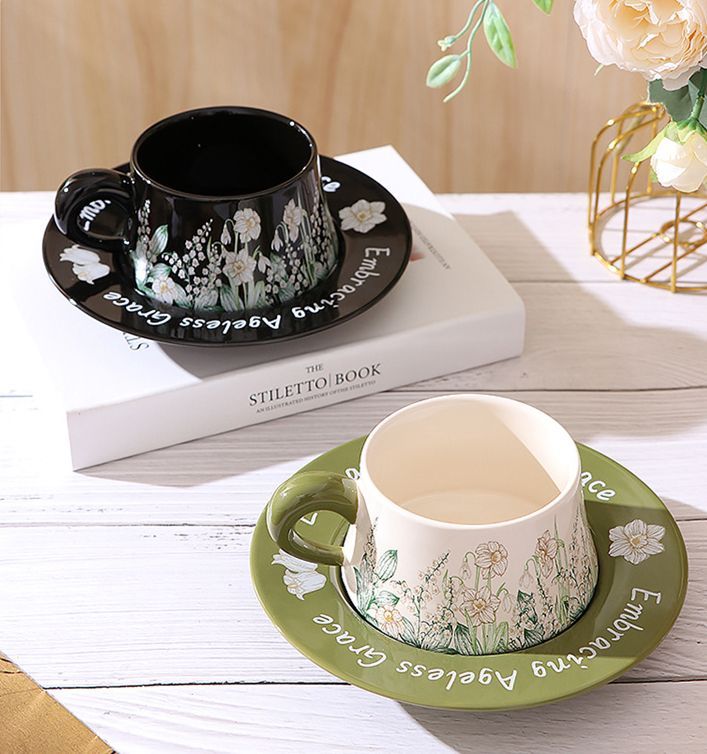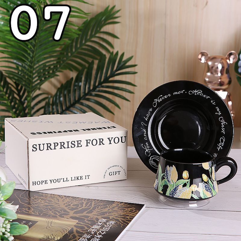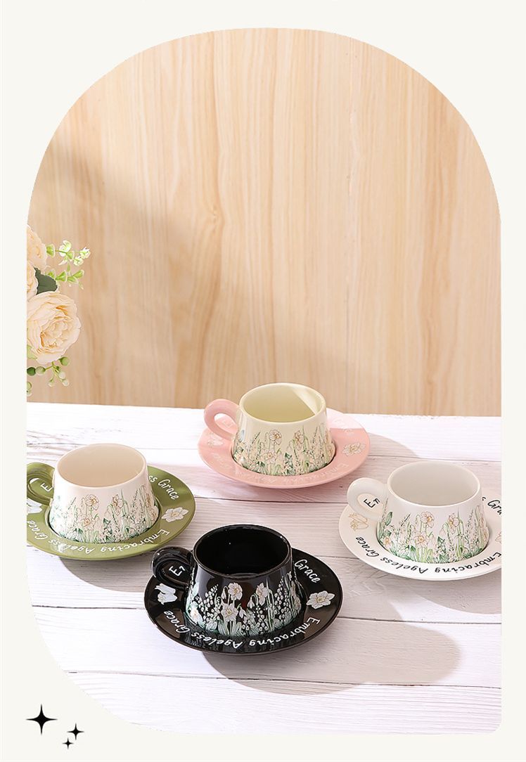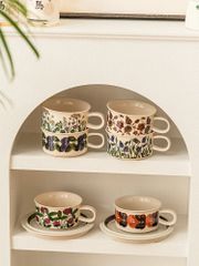 【サイズ】カップ:口径約8.5cm 高さ約6.5cm 容量約300ml ; ソーサー:約17×3cm