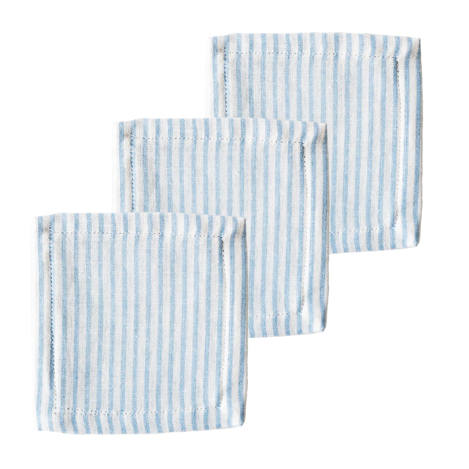 [VETLER] ベトラー インド綿100% コースター 3枚セット 10×10cm 布 おしゃれ 可愛い キッチン インテリア カフェ (キャンディストライプ ブルー)