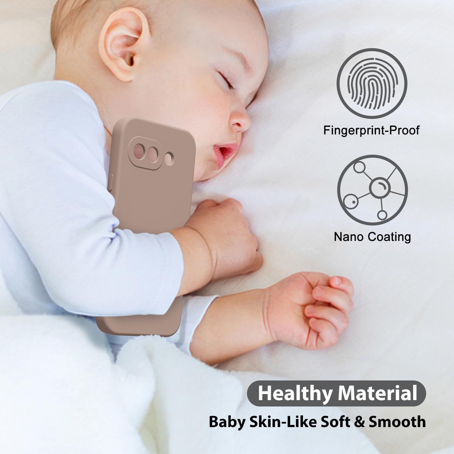 oakxco Google Pixel 9a スマホケース 液体シリコン かわいい 薄型 スリム グリップ ソフトラバージェル 女性用 男性用 スムース マット TPU 無地 ガーリー シンプル ケース カメラカバー保護付き ブラウン 秋