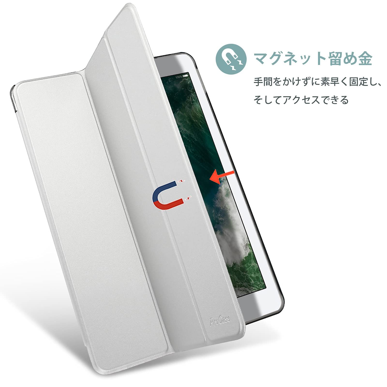 ProCase iPad 9.7(旧型)ケース スマート 超スリム スタンド フォリオ保護ケース 半透明フロスト バックカバー 対応機種:iPad 9.7 第6世代 2018 / 第5世代 2017 - シルバー
