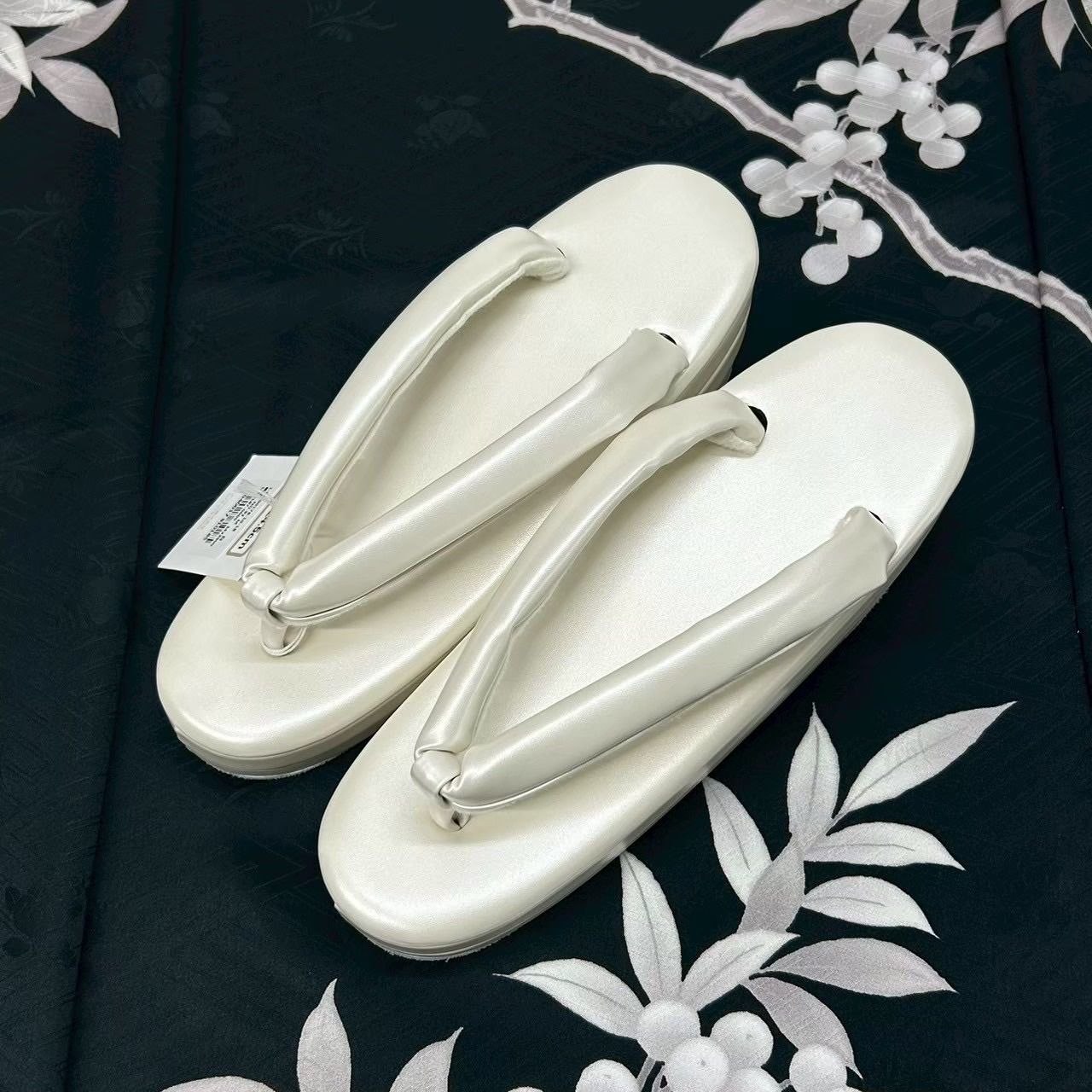 足の形に合わせた履きやすい様に台はカーブに造られてます。鼻緒は太めで痛さ軽減、カッコイイ系・可愛い系・綺麗系万能アイテム