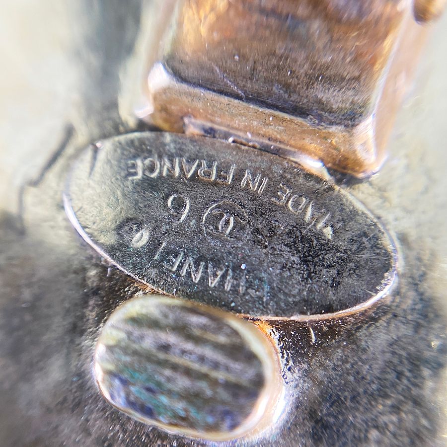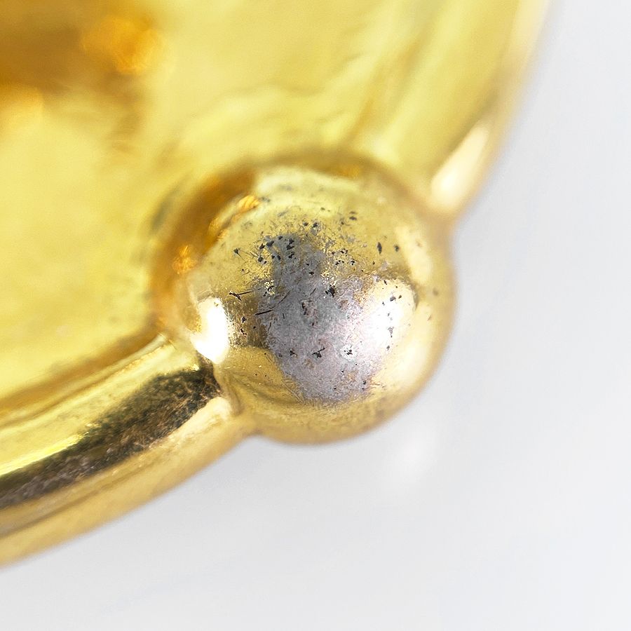 全体:クスミや小傷がございます。縁の丸い玉の部分にメッキ剥がれが見受けられる箇所がございます。裏面の刻印周りに汚れがございます。耳当てに変色や汚れ、メッキ剥がれがございます。店頭展示の為、細心の注意を払っておりますが、わずかなダメージが付く場合もございますので、ご了承くださいませ。詳しくは写真にてご確認下さい。その他気になる点がございましたらお気軽にお問合せ下さい。