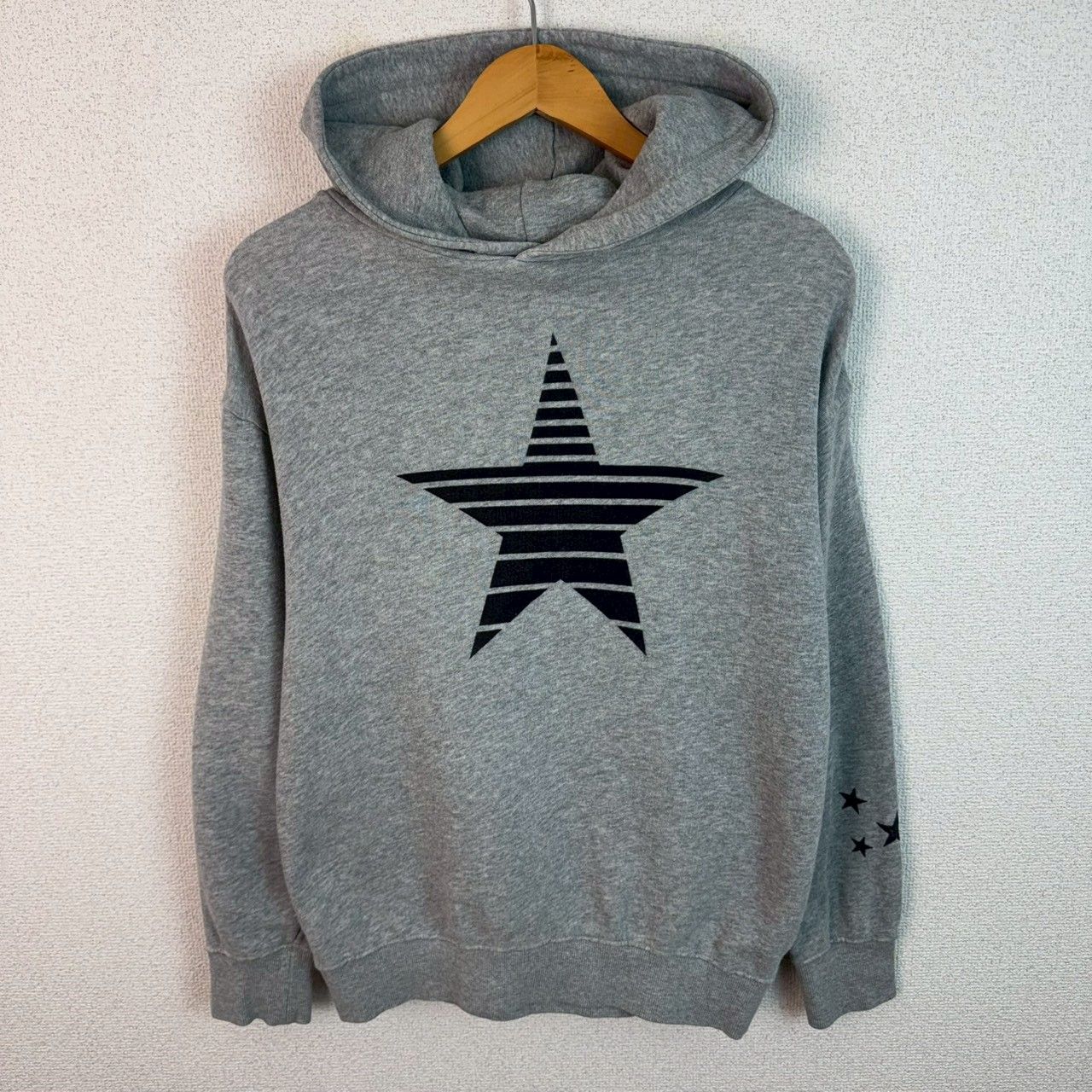 BEAMS HEART ビームスハート パーカー ロゴプリント グレー Mサイズ メンズ 古着 ストリート シンプル スウェット フーディー プルオーバー 星柄 スタープリント 灰色 スポーツMIX カジュアル 春服 秋服 冬服