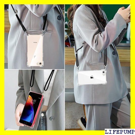 iPhone SE ケース 第3/2世代 クリア iPhone 7 ケース iPhone 8 ケース クリア カバー ショルダー ネック ストラップ付き iPhone se/7/8 スマホケース 縄掛け 薄型 軽量 シリコン TPU 紐付き 斜めがけ 取り外し可能 落下・紛失防止 ワイヤレス充電対応 透明 350