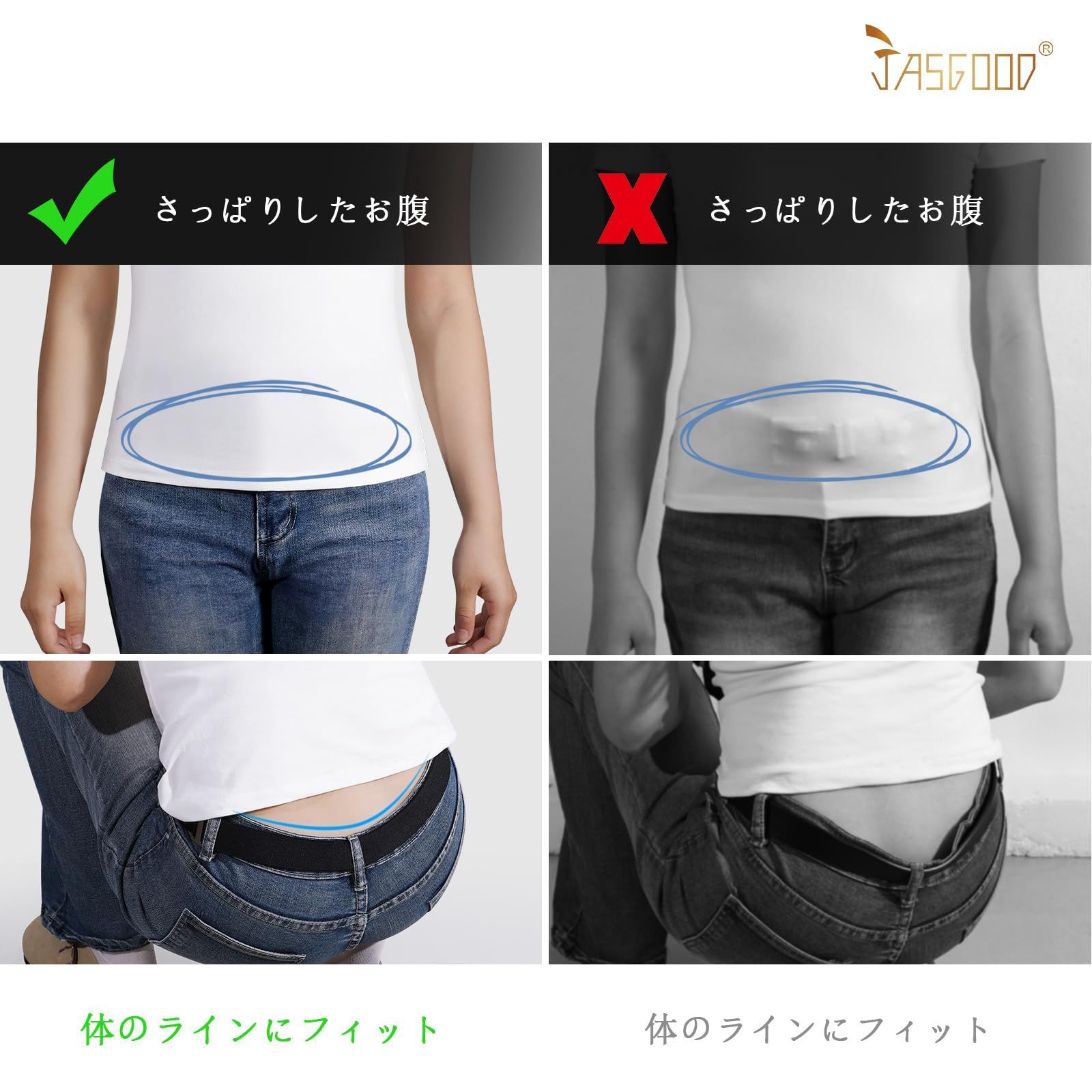 特徴:穴を気にせず、どこでも合わせて止められる。しゃがんだ時に、自転車に乗る際に 伸びてお腹への食い込みが少ないです。