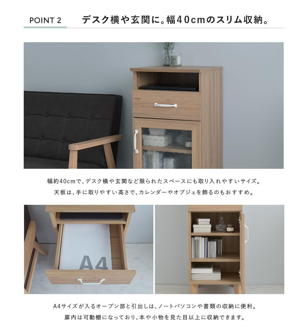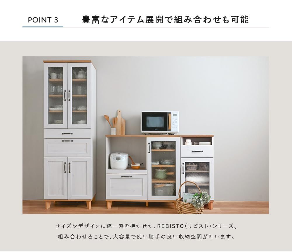 佐藤産業 REBISTO スリム リビング ダイニング 収納 キャビネット 食器棚 幅40㎝ 奥行き40.5cm 高さ90cm グレーナチュラル 木製 RV90-40LC GN