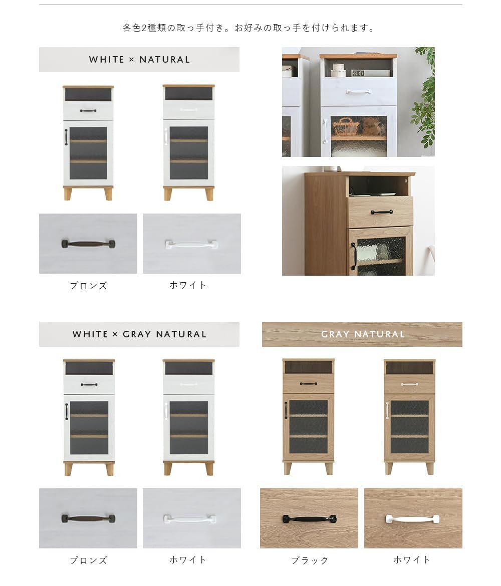 モノトーンのホワイト、バイカラーのホワイト・ナチュラルの2色からお選び頂けます。付属品として2色の取っ手付き。