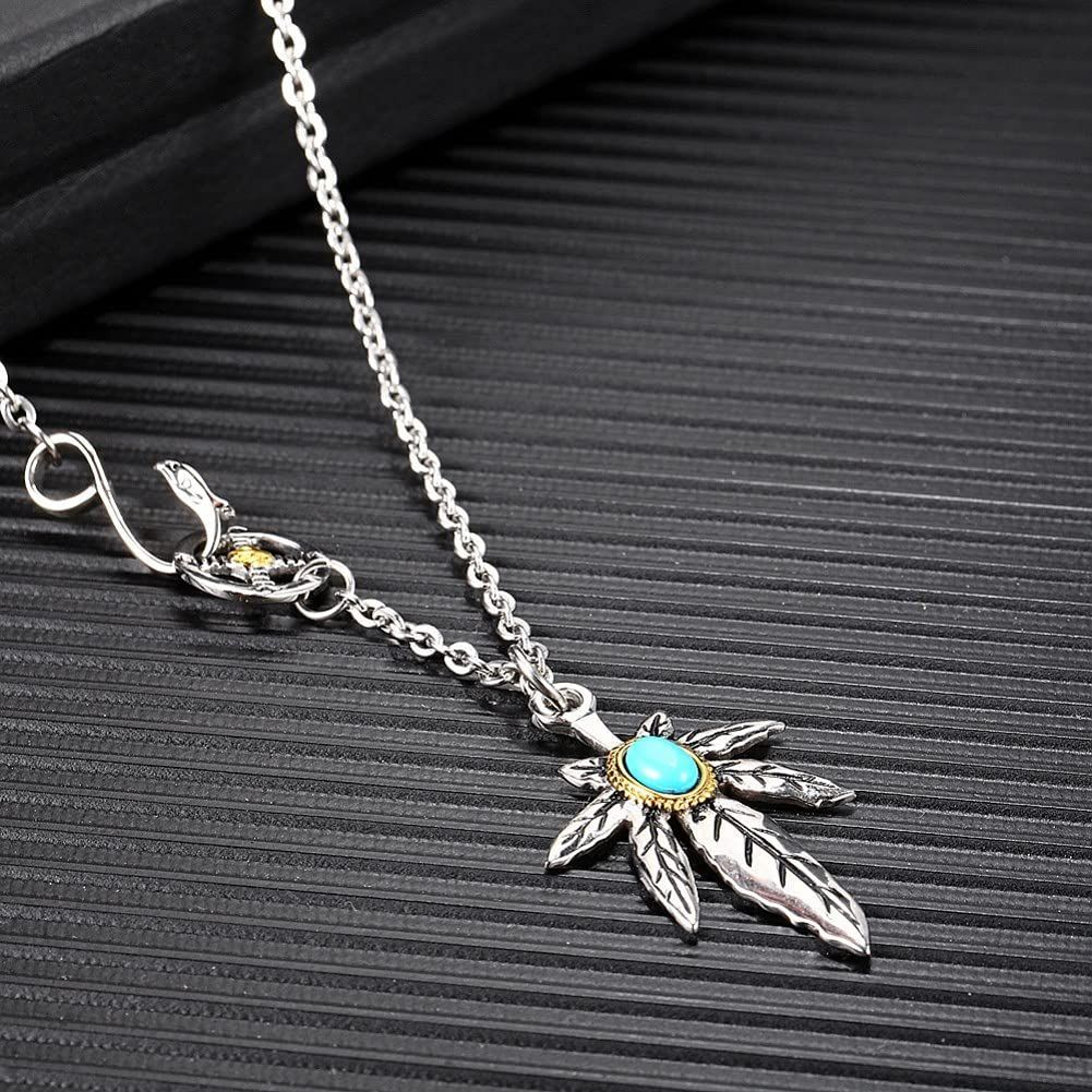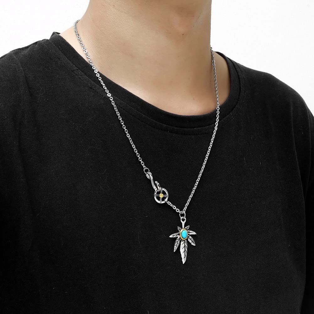 【ターコイズ ネックレス】シンプルで着用しやすいデザイン、派手過ぎず、地味過ぎない、ちょうど良い存在感が魅力の楓の葉ネックレス,普段使いでもフォーマルでも大活躍する、人気のメンズネックレスです。