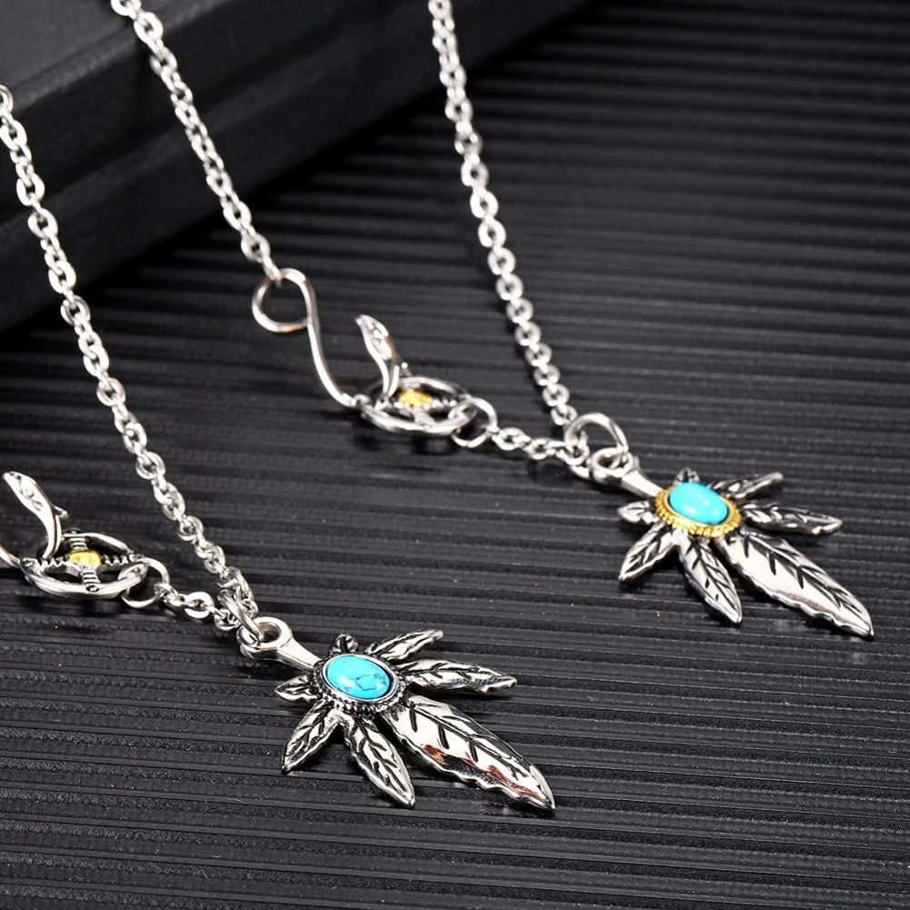 [Rockyu] ネックレス ターコイズ メンズ シルバー イーグル・アイ 羽ネックレス ヒップホップ 羽根ネックレス ターコイズネックレス 楓の葉ペンダント 翼ペンダント カッコイイ パーティー チタン 金属アレルギー対応