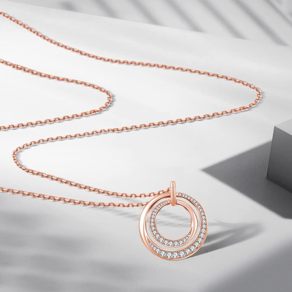 メビウス環デザイン:ペンダントは、光沢のあるバーミキュライトが象徴する2つの同心円のように見えるメビウス環で設計されています。 このローズゴールドアクセサリー、シンプルだがファッショナブルなデザインは、クラシックでエレガントなスタイルを提供し、歪んで重複するメビウス環は、女性の無限の魅力を象徴しています