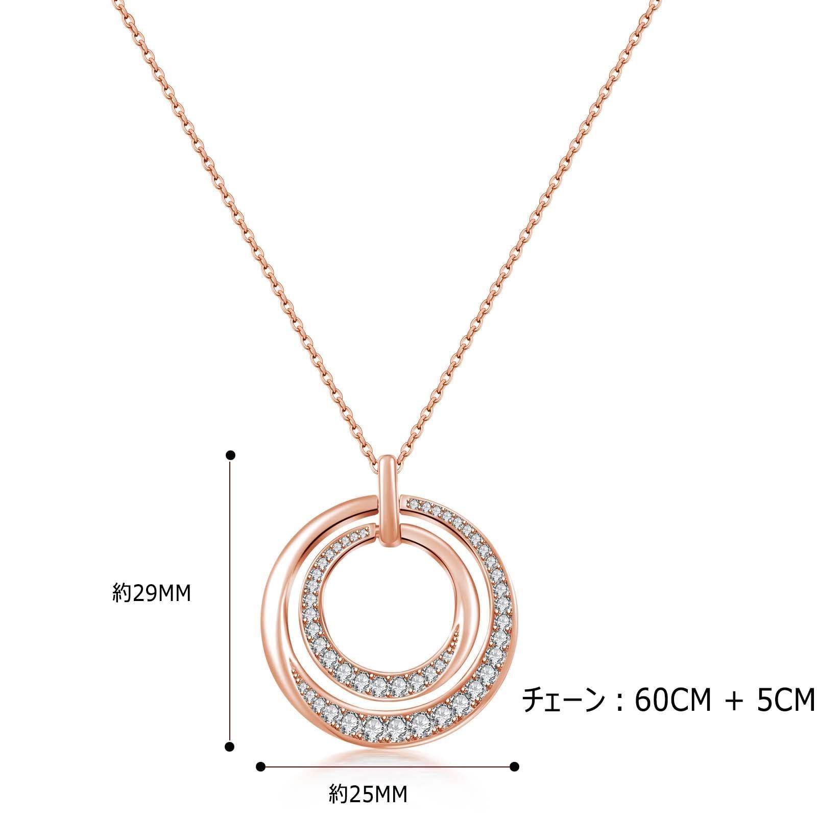 [Free bird] ロングネックレス レディース 3連サークル ネックレス ペンダント アクセサリー 60+5cm 誕生日 クリスマスプレゼント 女性 ジュエリー (ピンクゴールド 2連)