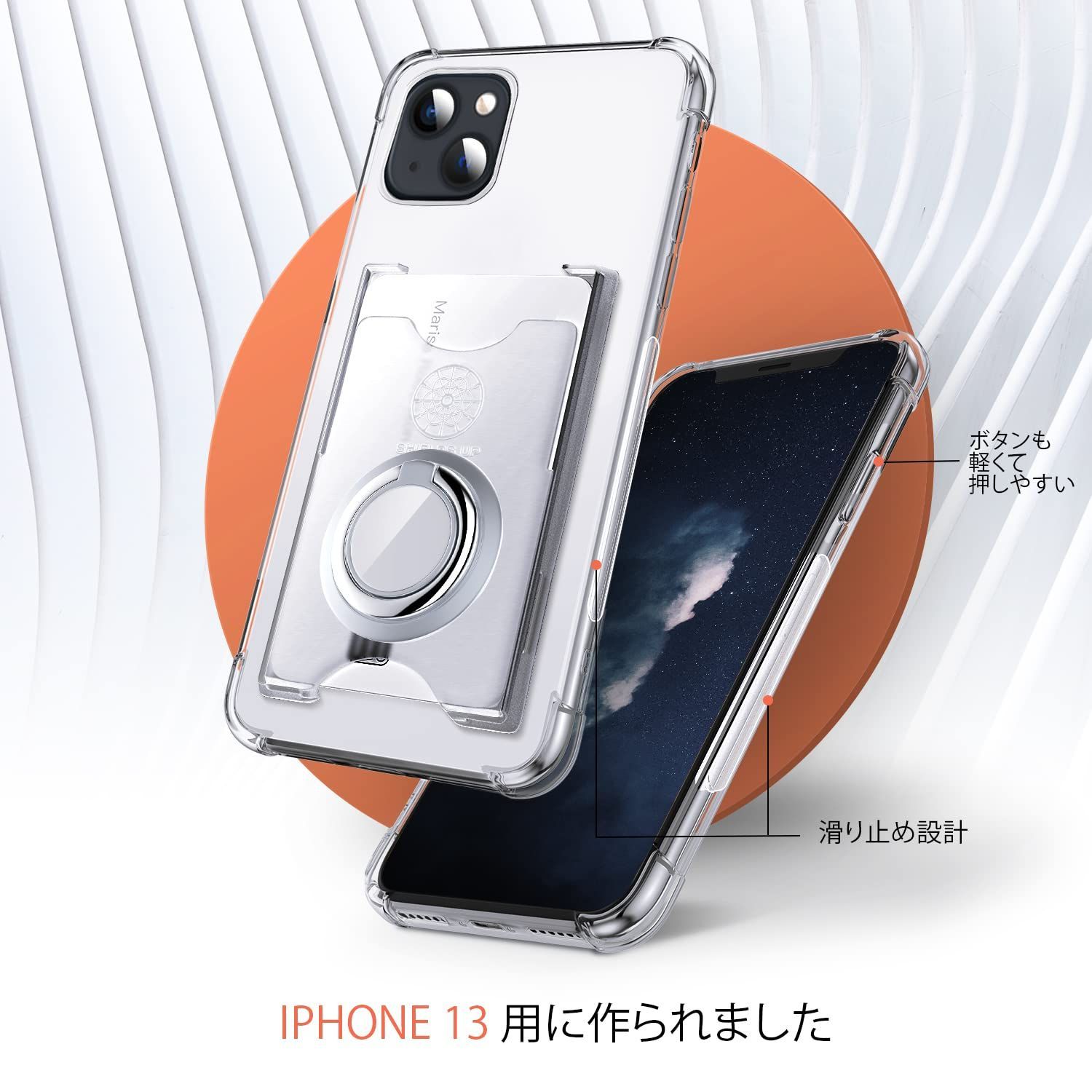 SHIELDS UP iPhone 13 用 ケース リング付き カード収納 背面ポケット リング付き スタンド機能 耐衝撃 透明 TPU カバー アイフォン13 スマホケース 6.1インチ スマホケース - クリア