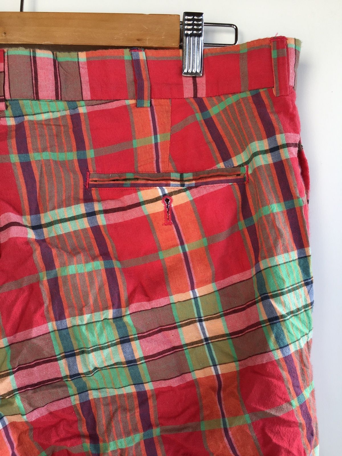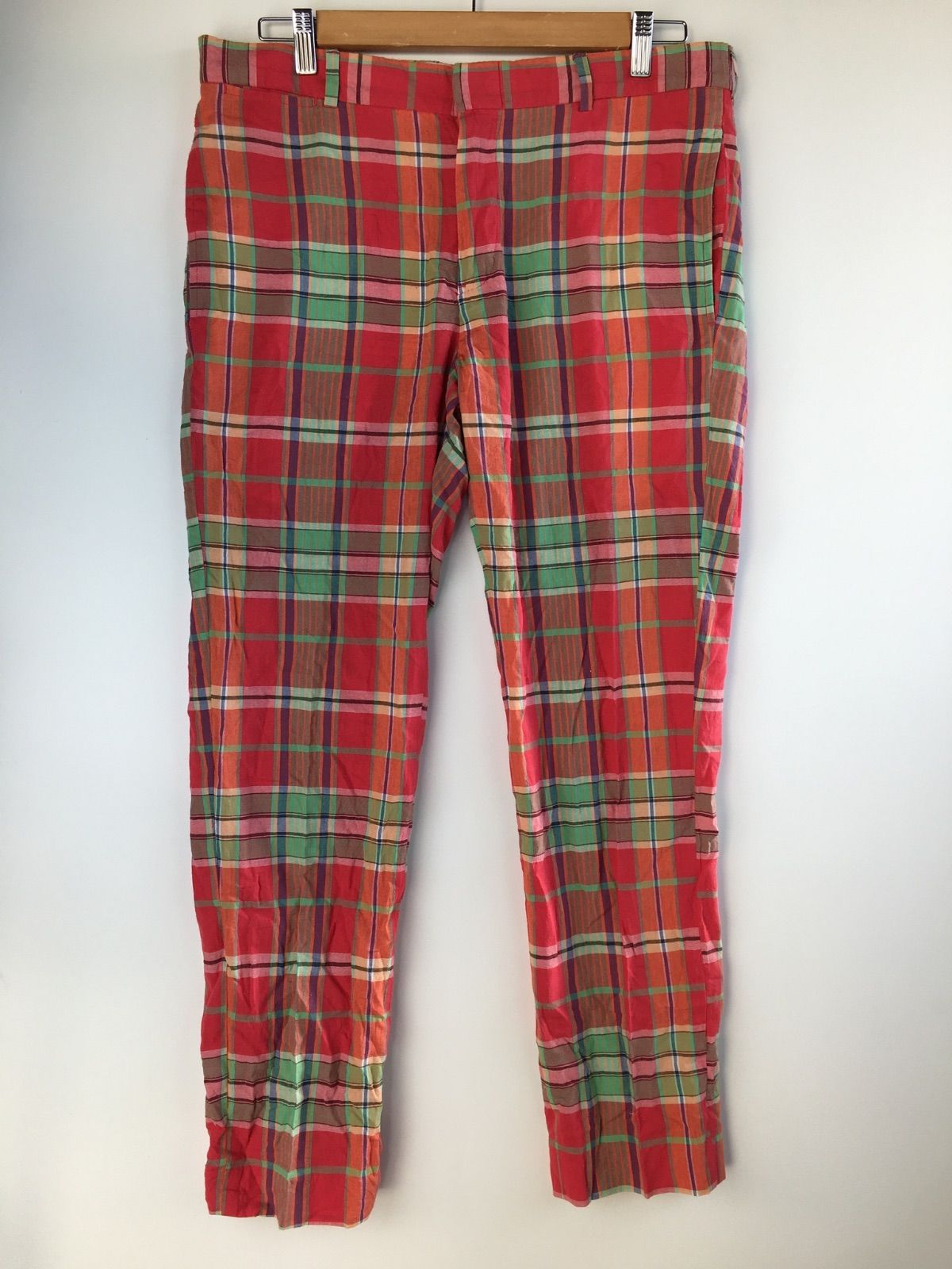 シックなワインレッドのような、深く落ち着いた赤が魅力のチノパンツです。バックポケット上部にはブランドの象徴であるポニーロゴが刺繍されています。しっとりとした柔らかなコットン生地を使用しており、上品な光沢感が大人のカジュアルスタイルを格上げしてくれます。ストレートに近いシルエットで、ジャケットスタイルとも相性抜群です。