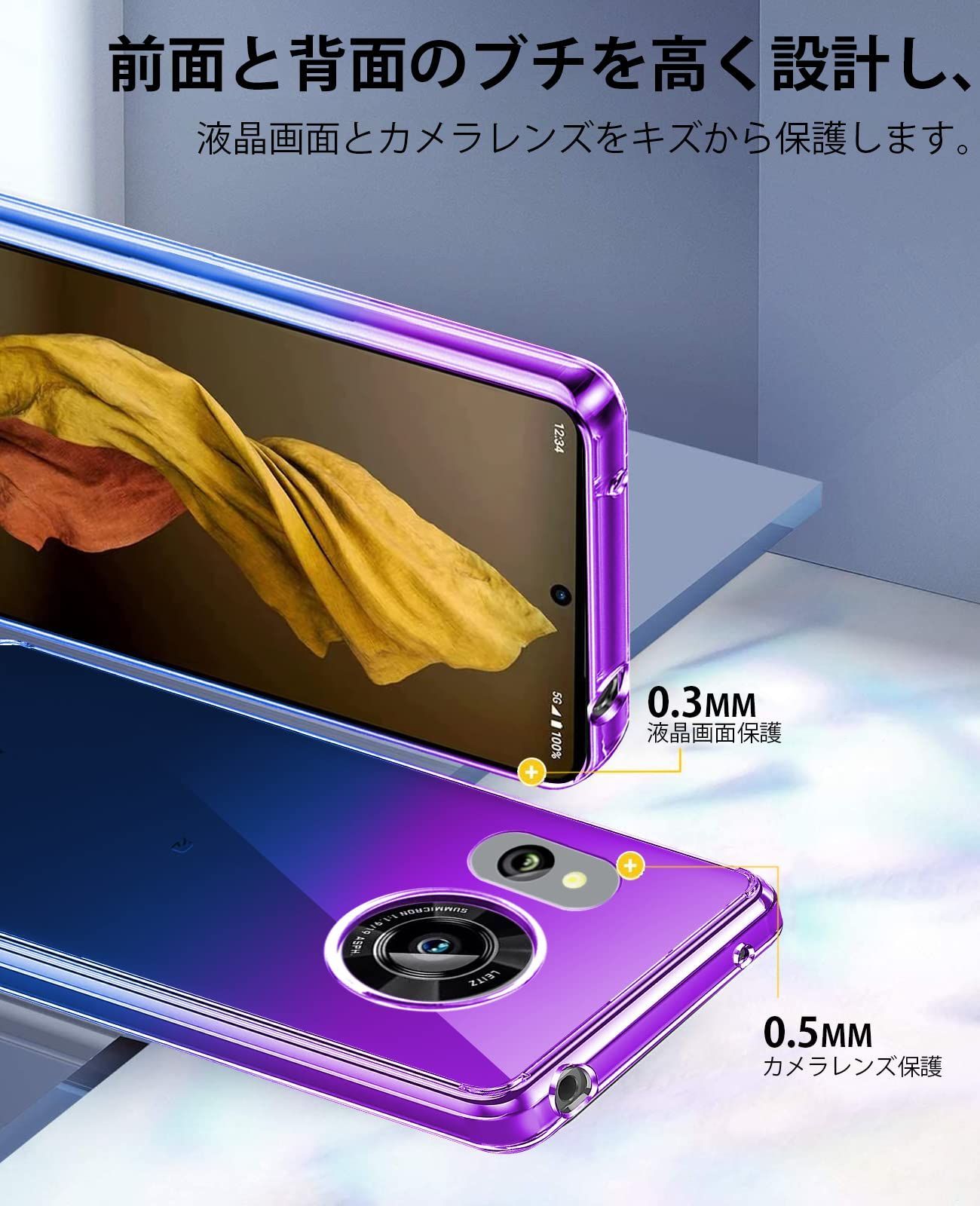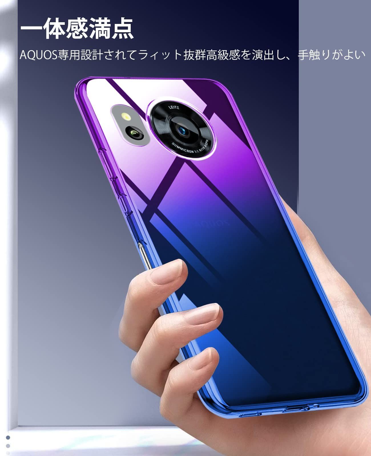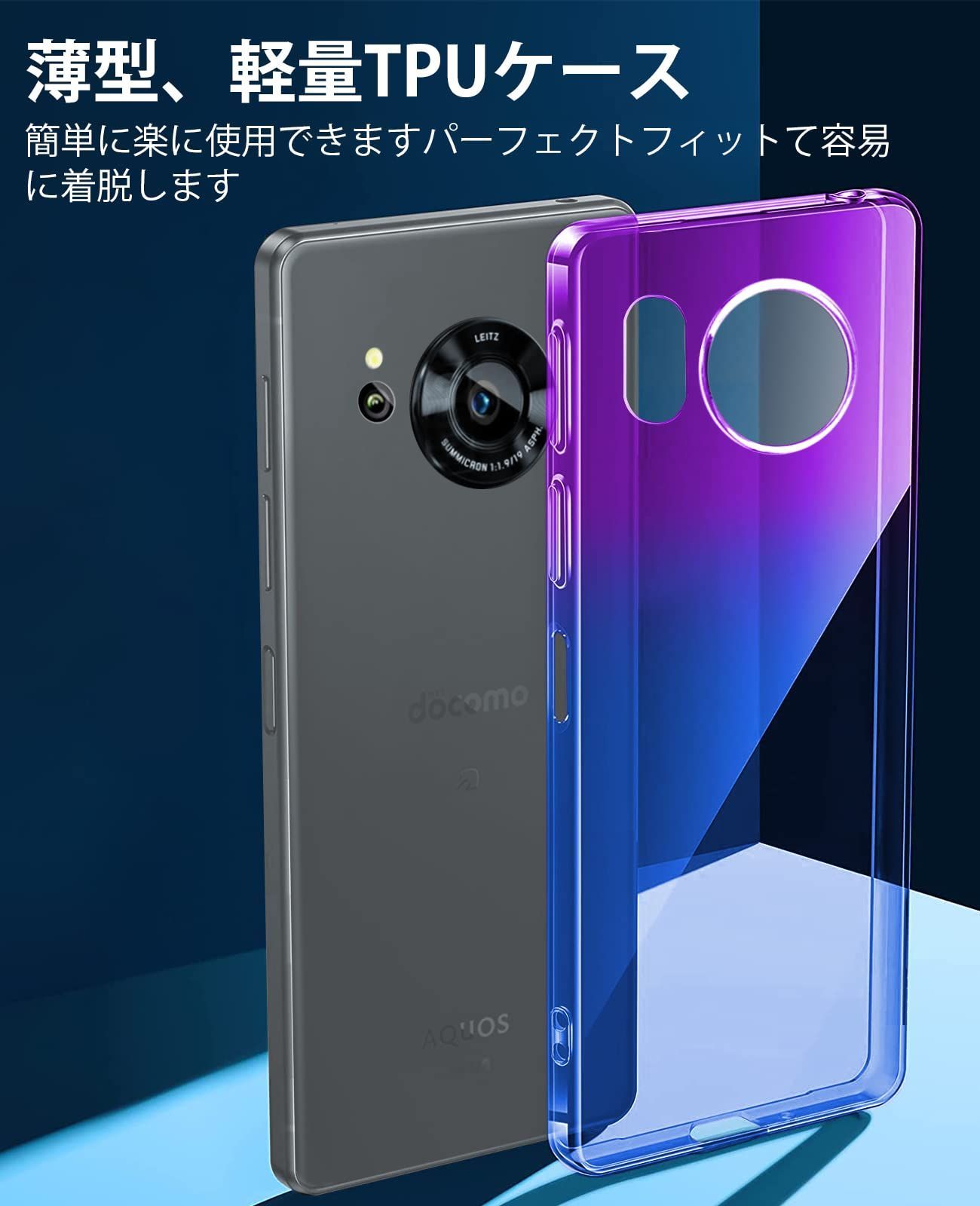 対応 AQUOS sense7 plus 用 ケース クリア 薄型 TPU 耐衝撃 グラデーション色 ケース 指紋防止 ストラップホール付き 擦り傷防止 軽量 人気 スマホケース カメラ保護 スマホケースSense7 plus専用 パープルブルー
