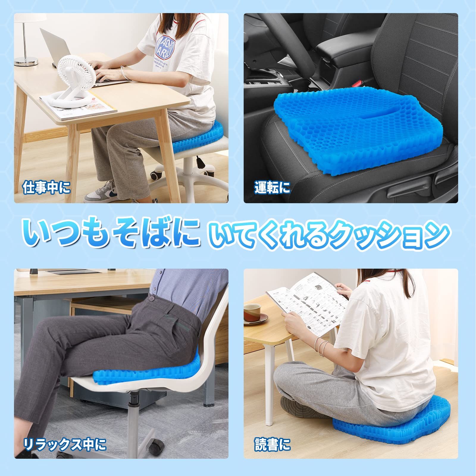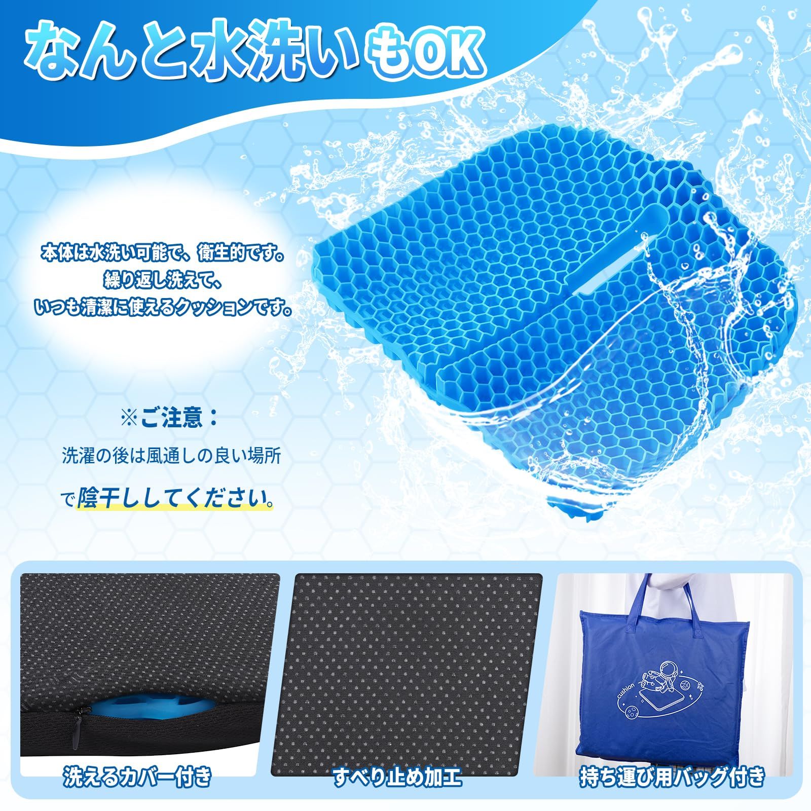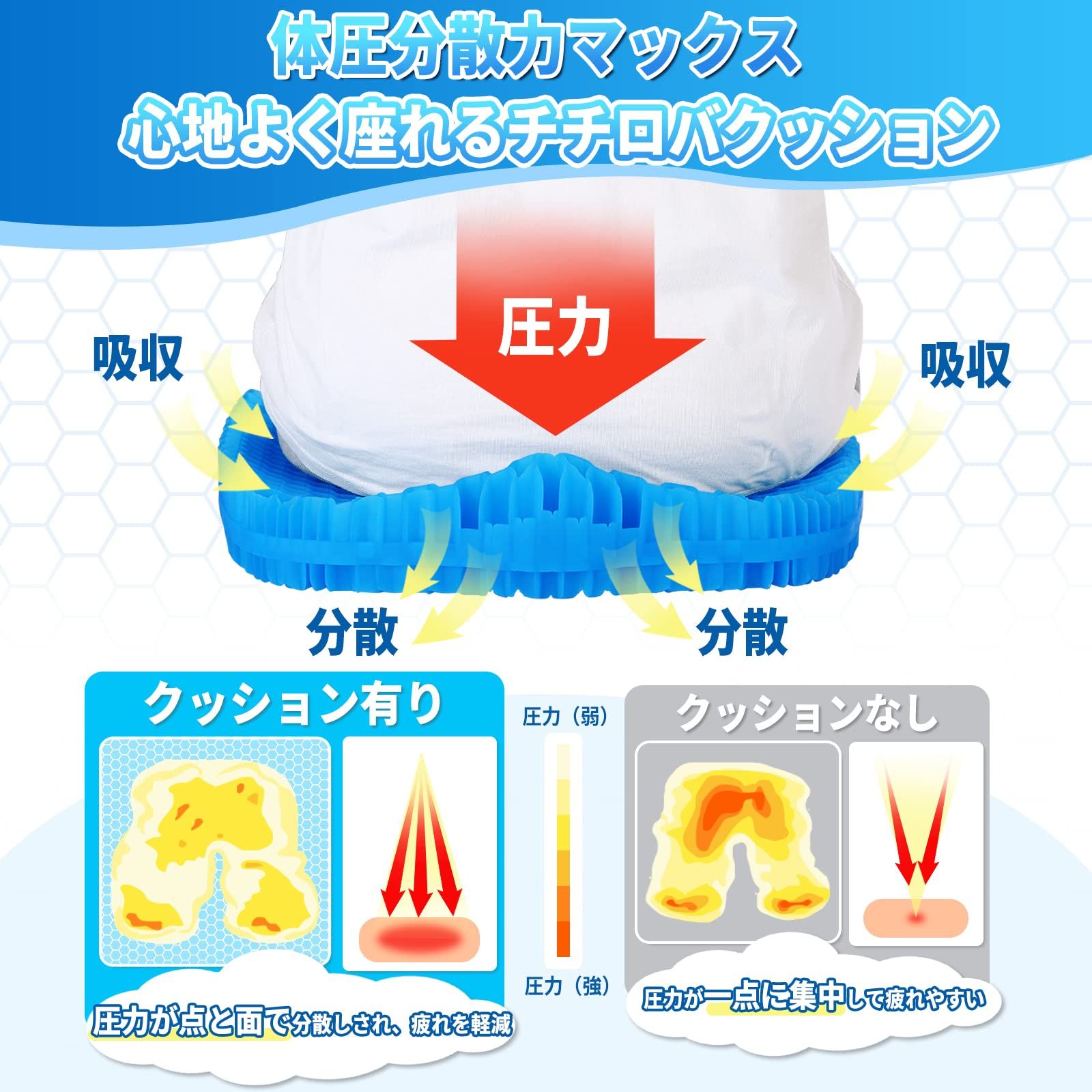 【 限定】 チチロバ(Titiroba) ゲルクッション 無重力 クッション 座布団 U字 立体構造 ハニカム構造 蒸れない 敬老の日 在宅勤務 オフィス 車 椅子 自宅用 洗える カバー ブルー 22FC007 42×37×9 cm