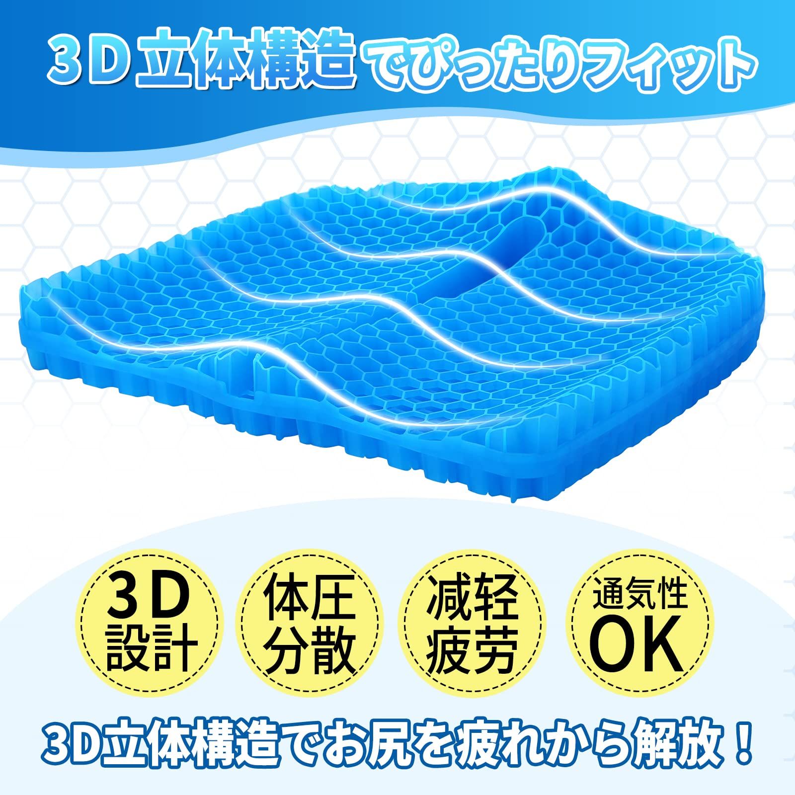 【3D立体構造・ジャストフット感◎】座るとすっぽりと入る、臀部を包み込んで支えてくれる、ひと味違う3D立体構造ゲルクッションです。人体工学に基づいてデザインされた形状になっておりますので、ストレス解消効果はきたいできます。