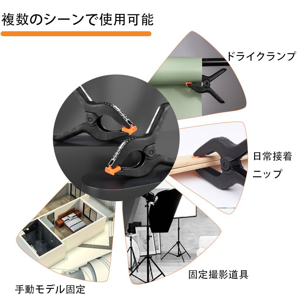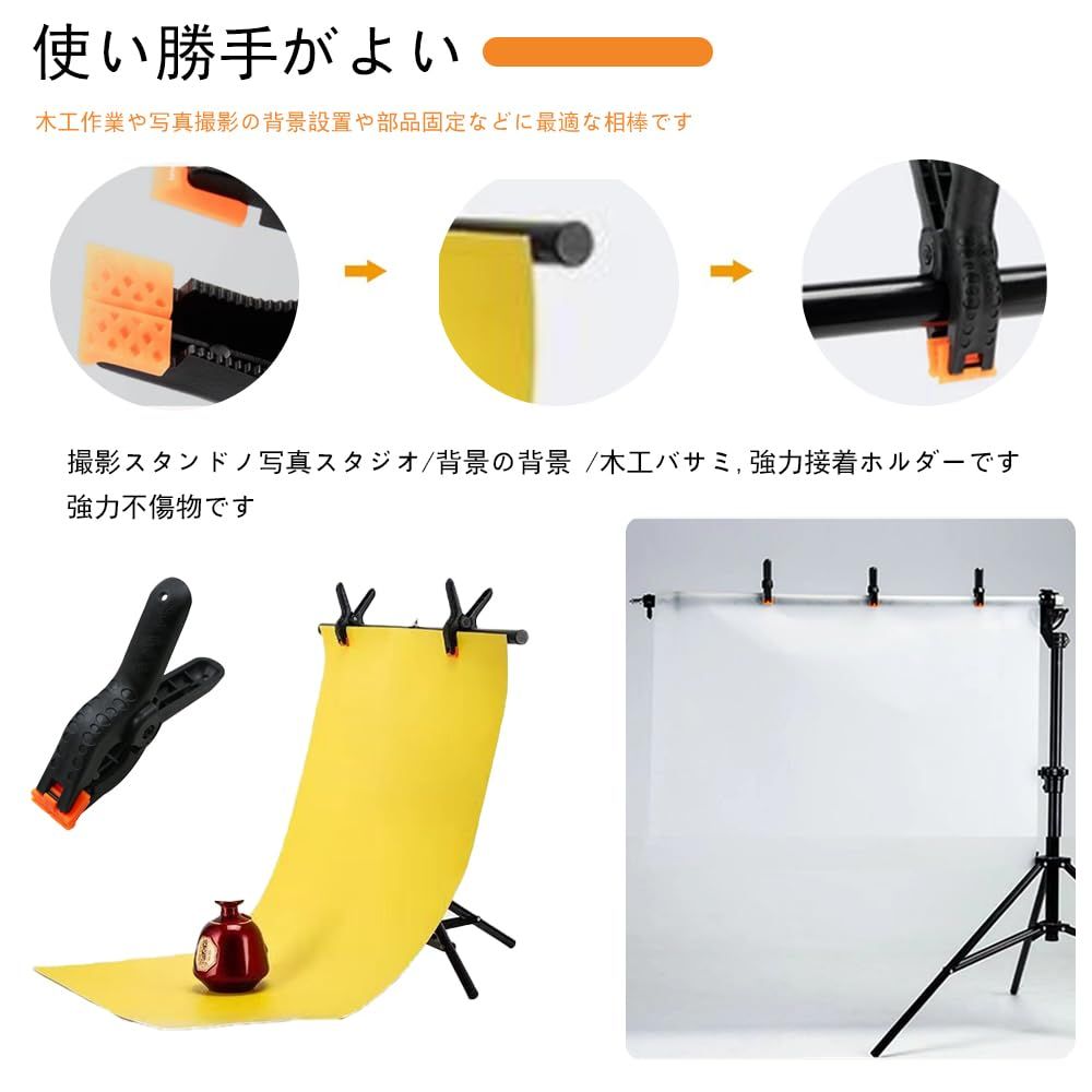 高品質素材:クリップは高品質のナイロンと金属材料で作られており、丈夫なだけでなく、耐久性もあります。 快適なグリップを提供し、背景が滑るのを防ぎ、即座にグリップを提供し、組み立て中に再配置するのは簡単です。