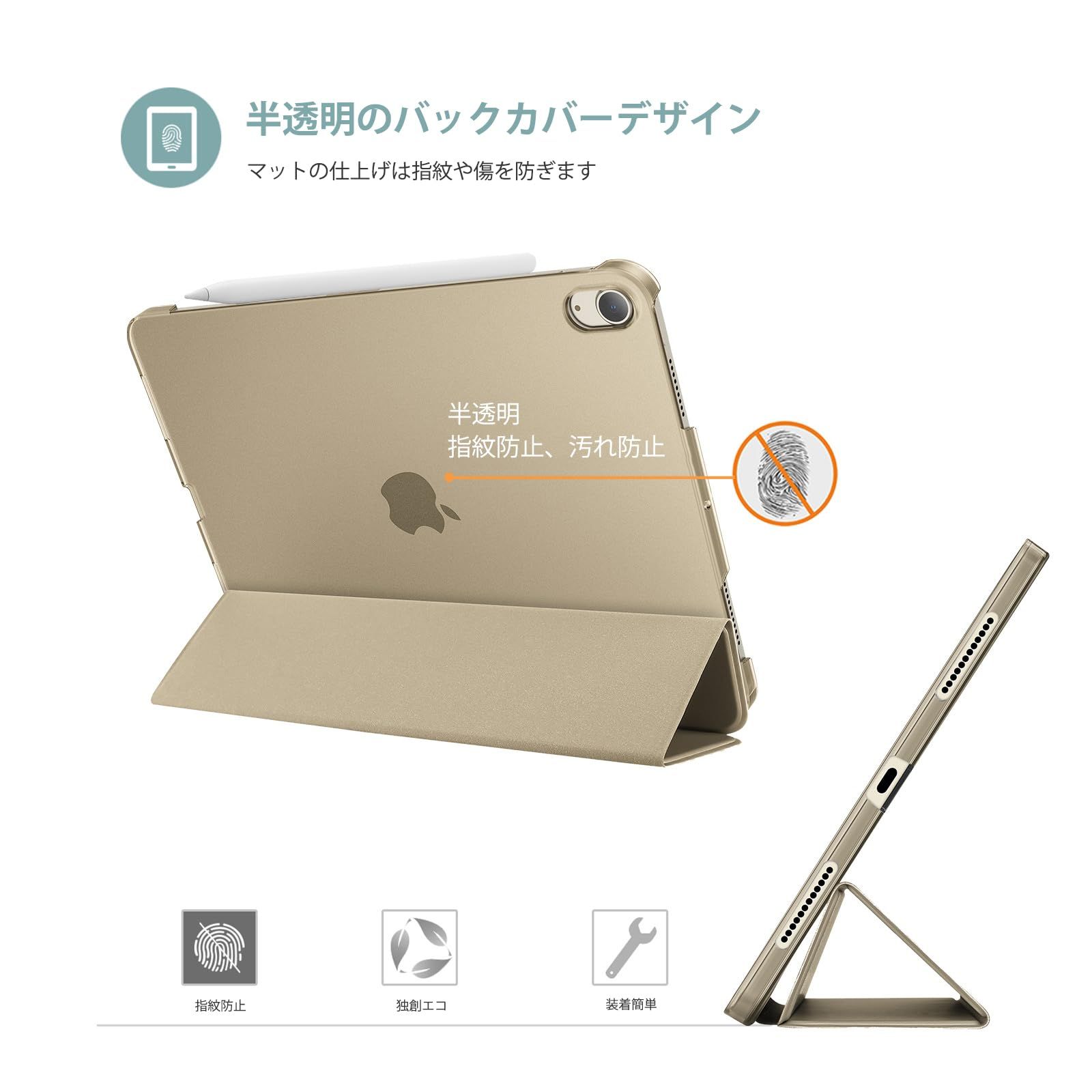 ProCase iPad Air 11インチ ケース M3 (2025) / M2 (2024) / iPad Air 第5世代 / 第4世代 軽量 スタンド 三つ折り フォリオ保護ケース 半透明バックカバー Apple Pencil 2対応 対応端末:iPad air 11インチ M3 (2025)、M2 (2024)、iPad Air5 2022、Air4 2020 - スターライト