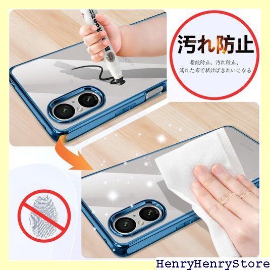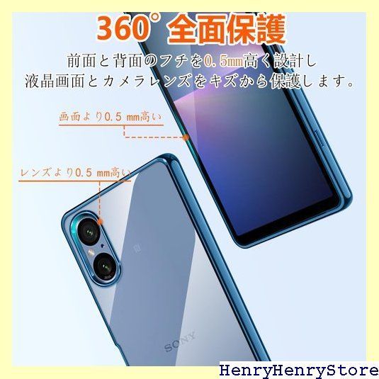 Xperia5 V ケース クリア 青 SO-53D SOG12 ケース エクスペリア5V カバー 透明 耐衝撃 米軍MIL規格 TPU 薄型 軽量 メッキ加工 青縁 ソフトケース 人気 保護カバー Xperia5V ブルー 1330