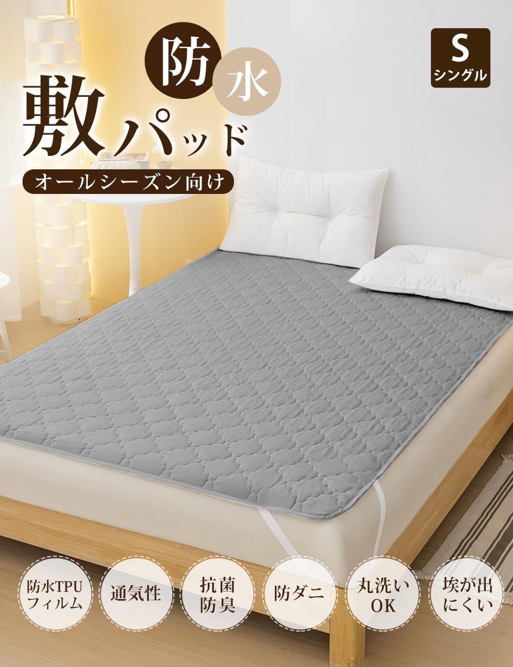 Melvint 敷きパッド シングル 防水シーツ 防水おねしょシーツ 洗える オールシーズンで使える 抗菌 防臭 防ダニ 介護用 防水 シーツ 四隅にゴム付き 無地 失禁対策 ベッドパッド ベッドシーツ (グレー ・ 100*200cm)