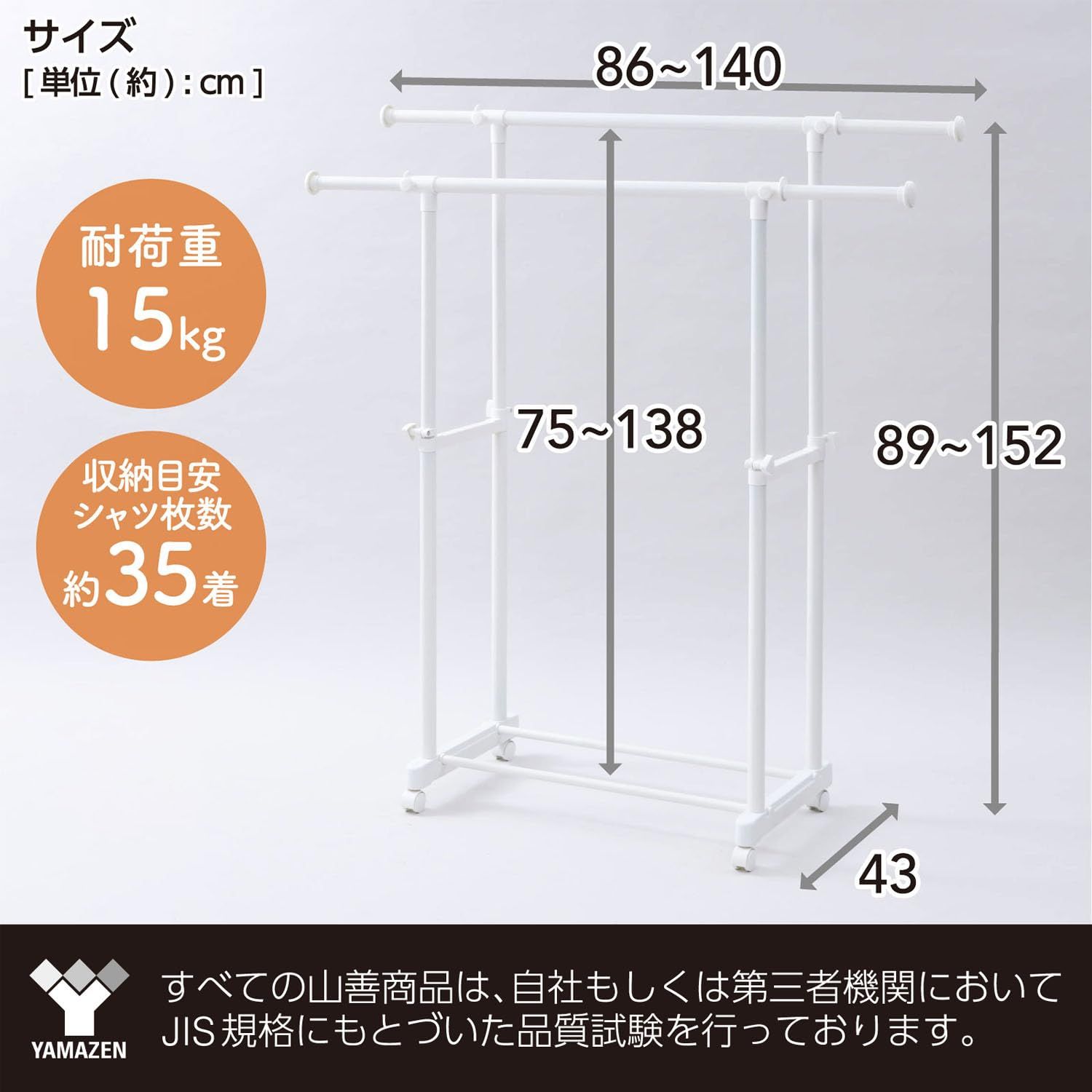 山善(YAMAZEN) ハンガーラック キャスター付き 縦/横伸縮 ダブル 幅86-140×奥行43×高さ89-152cm 組立品 オールホワイト MKS-WS(AWH)