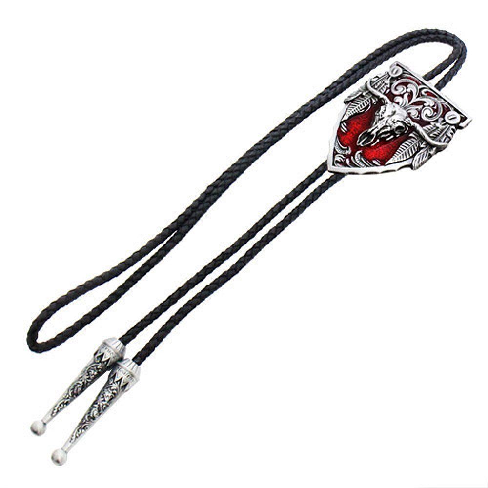 Color:レッド ウエスタン ネイティブアメリカン風 ロングホーン 【ループタイ ネックレス】 ポーラータイ ポロタイ prt0077