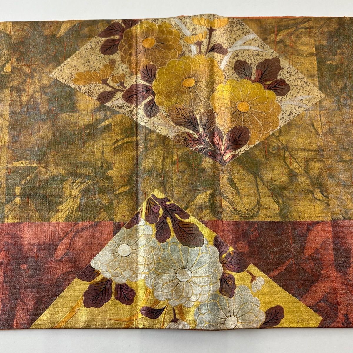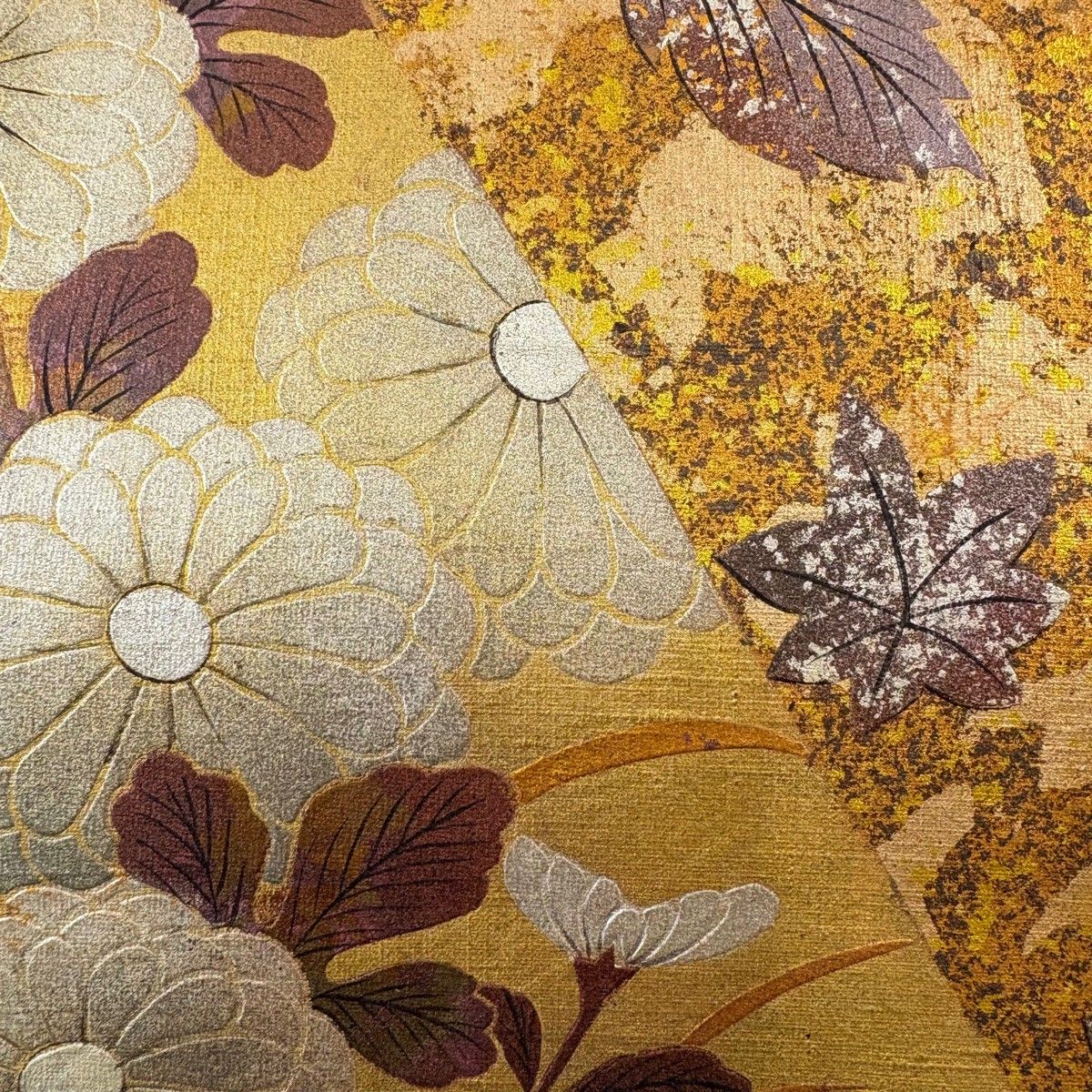 手先前柄間にヤケ、表地所々に若干の金銀彩の変色がございます。