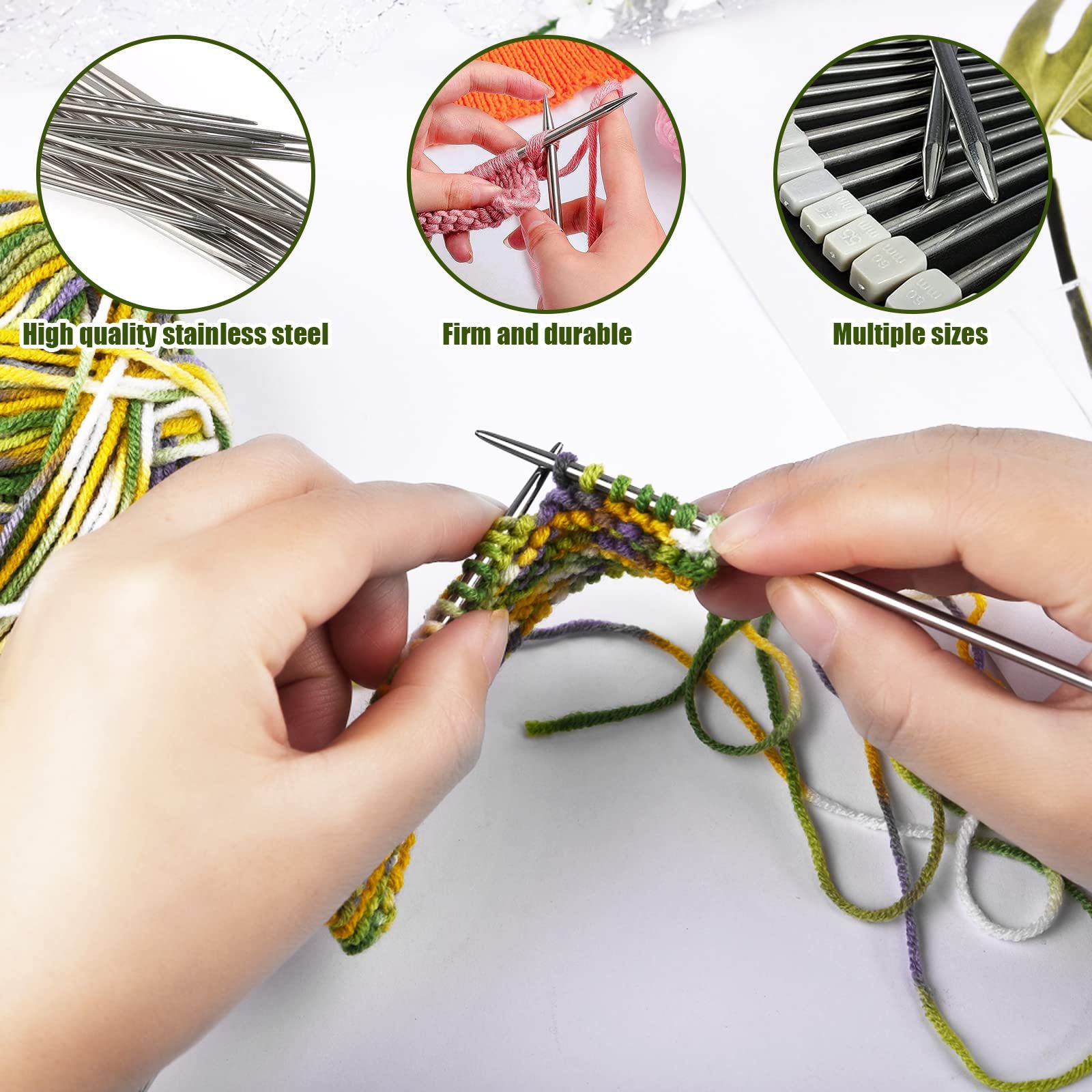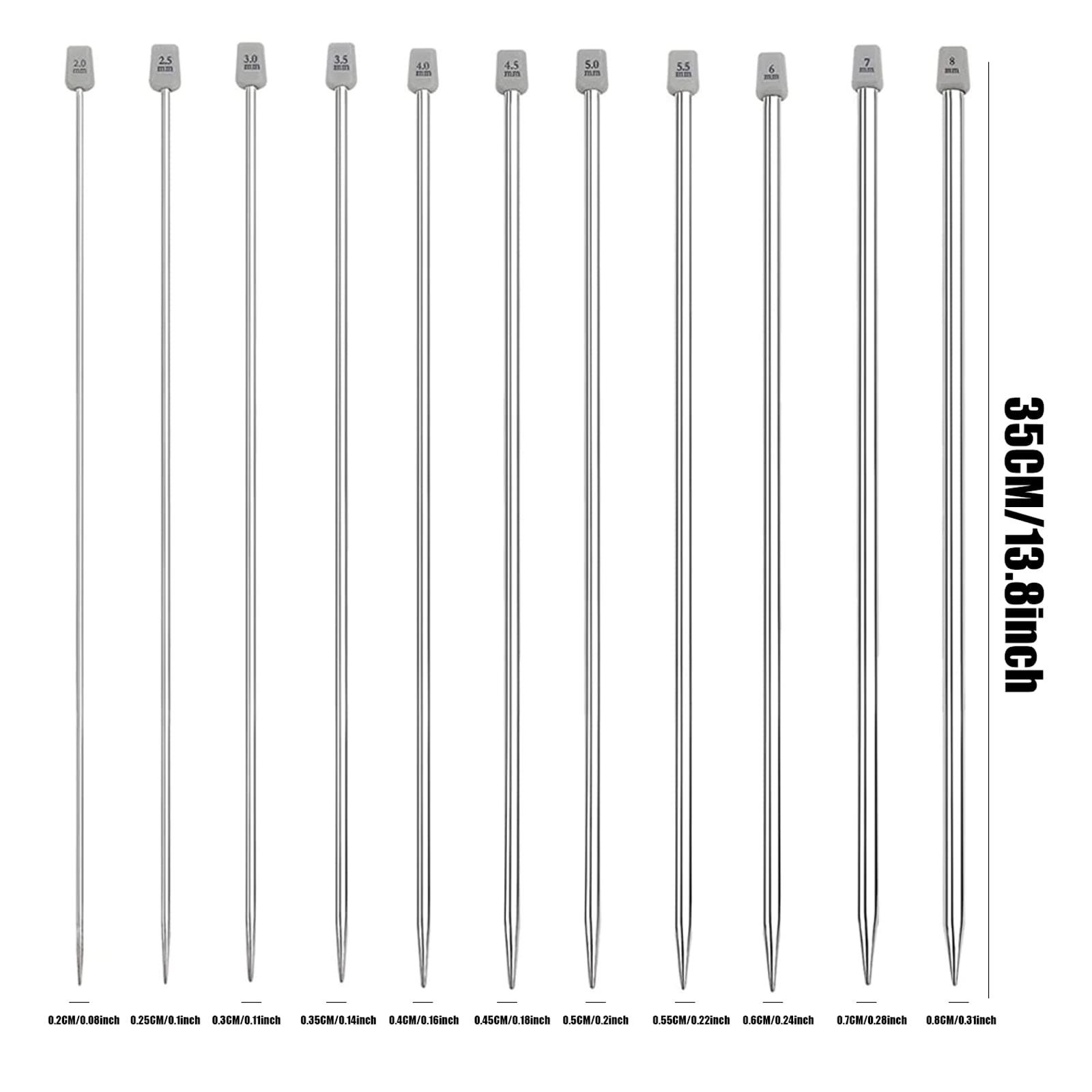 棒針 玉付き 22本セット ステンレス製 編み棒 編み針 35cm 2mm/2.5mm/3mm/3.5mm/4mm/4.5mm/5mm/5.5mm/6mm/7mm/8ミリ 編み物道具