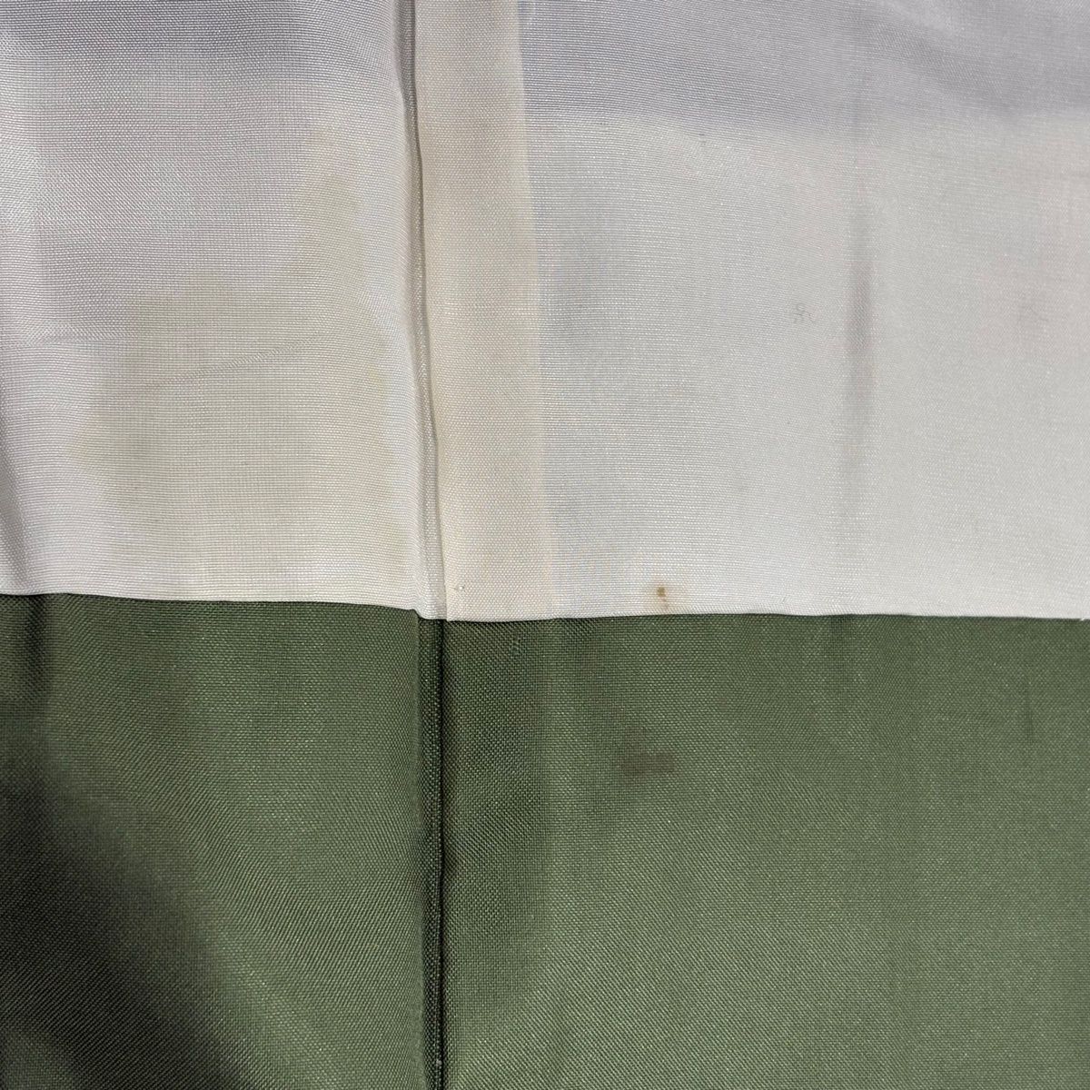 裏地臀部付近にシミ、裏地両脇に汗シミ、衿裏と胴裏に黄変がございます。