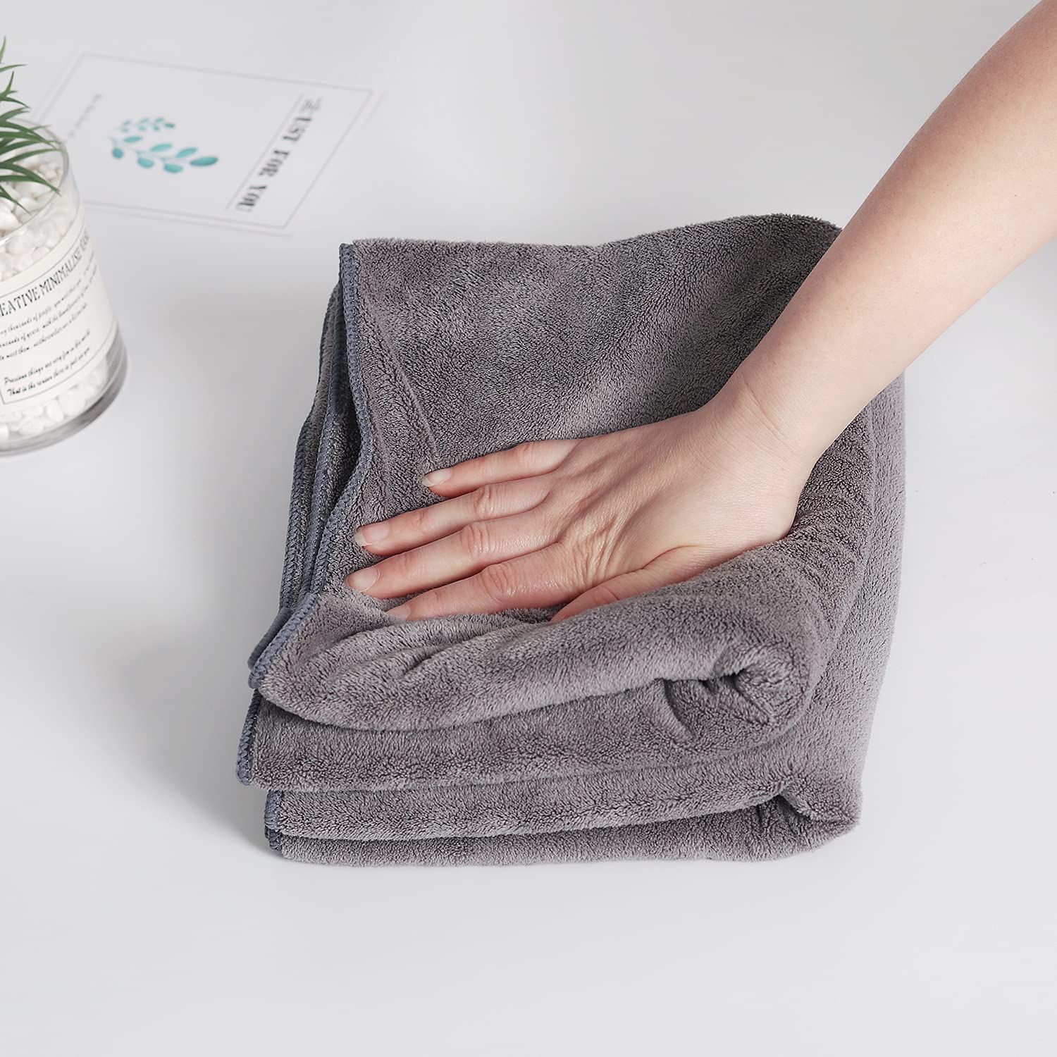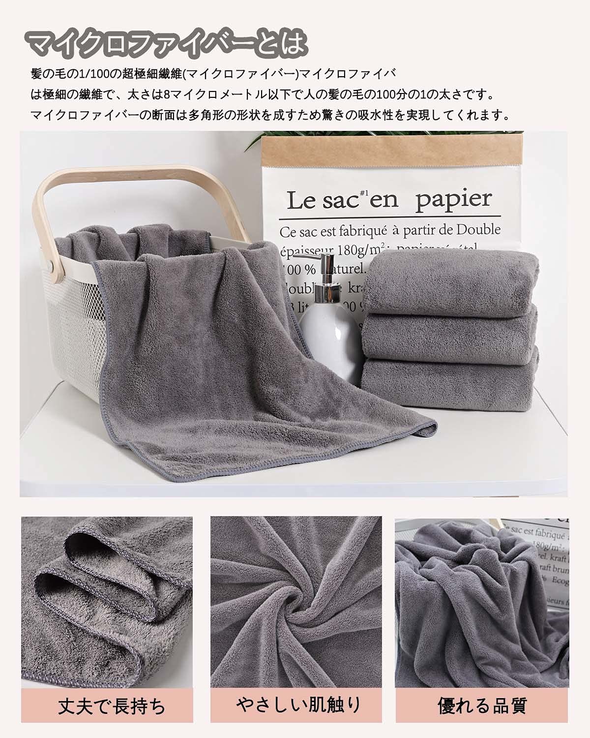 ヘアドライタオル【Lumimi 100*40cm 2枚セット グレー】デイリータオル ビッグフェイスタオル ミニバスタオル 吸水 速乾 マイクロファイバー 大人も子供も使える お風呂上がり耐久性 バス用品