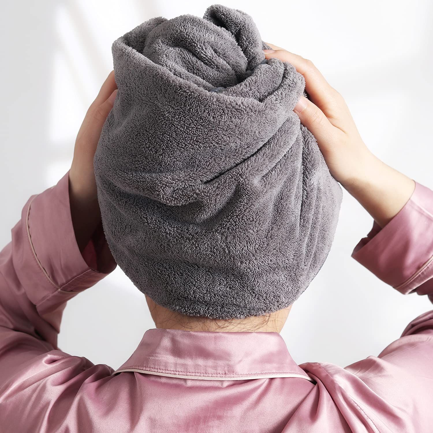 【セット内容】ヘアドライタオル 2枚セットサイズ:約100×40cm、重量:約90g(1枚あたり)セット内容: グレー2枚+取扱説明書。ゴシゴシと拭かなくてもサッと水分を吸水する、そんな驚きの吸水力が魅力のふわふわヘアドライタオルです。